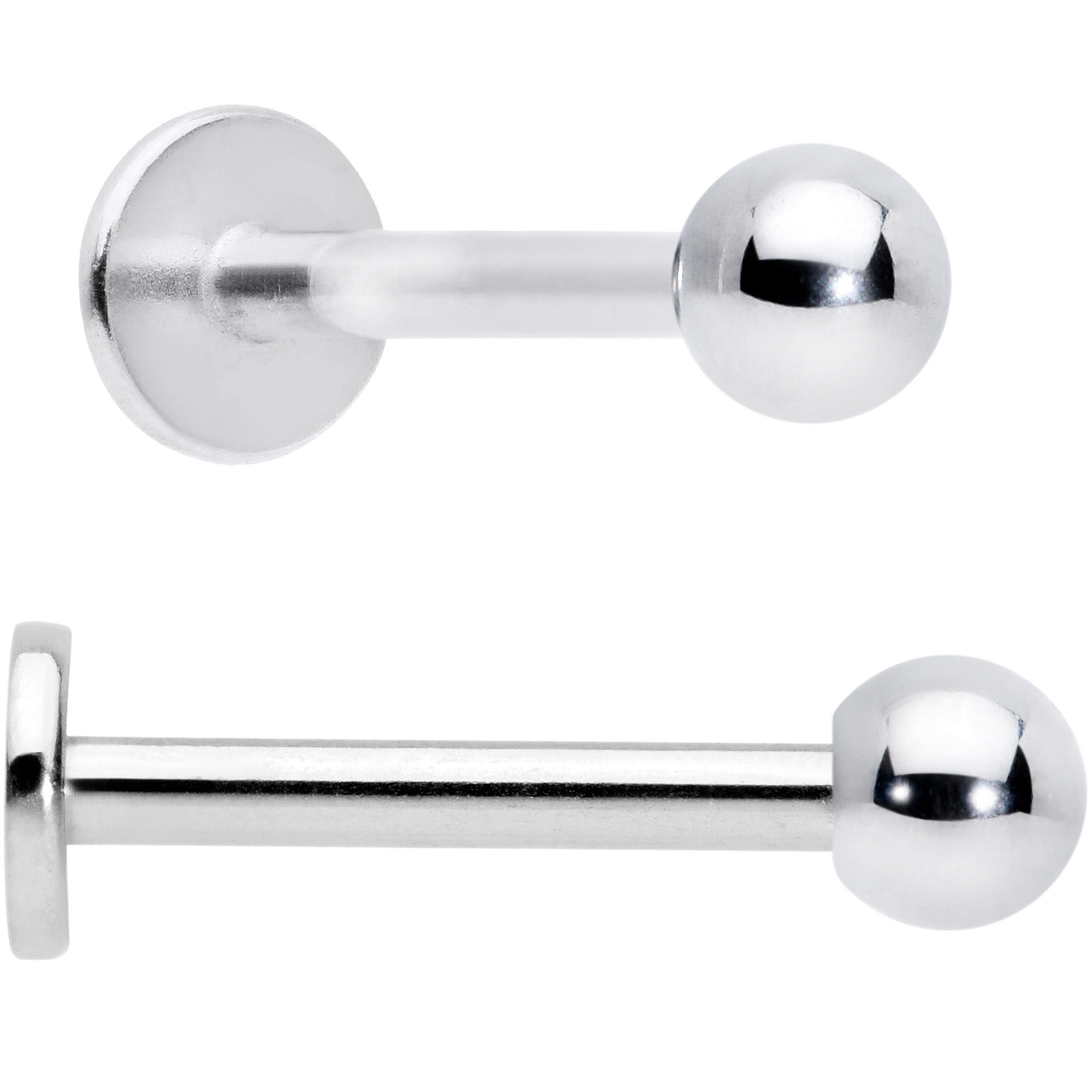Get a look for every occasion with this set of 16 gauge lip rings! They're made with 8mm durable 316L surgical grade stainless steel straight barbells with flat disc ends. One features a 3mm ball end for classic, simple appearance. The second features a flower charm, composed of matching orbs for a look that's simple and whimsical. The third one features a butterfly charm, with the wings composed of clear cubic zirconia gems for a more luxurious appearance. And you can wear these in multiple piercings including lip, monroe, helix, tragus, and some conch piercings. You'll be ready for anything with this set of cartilage jewelry! Sold as a set of three.