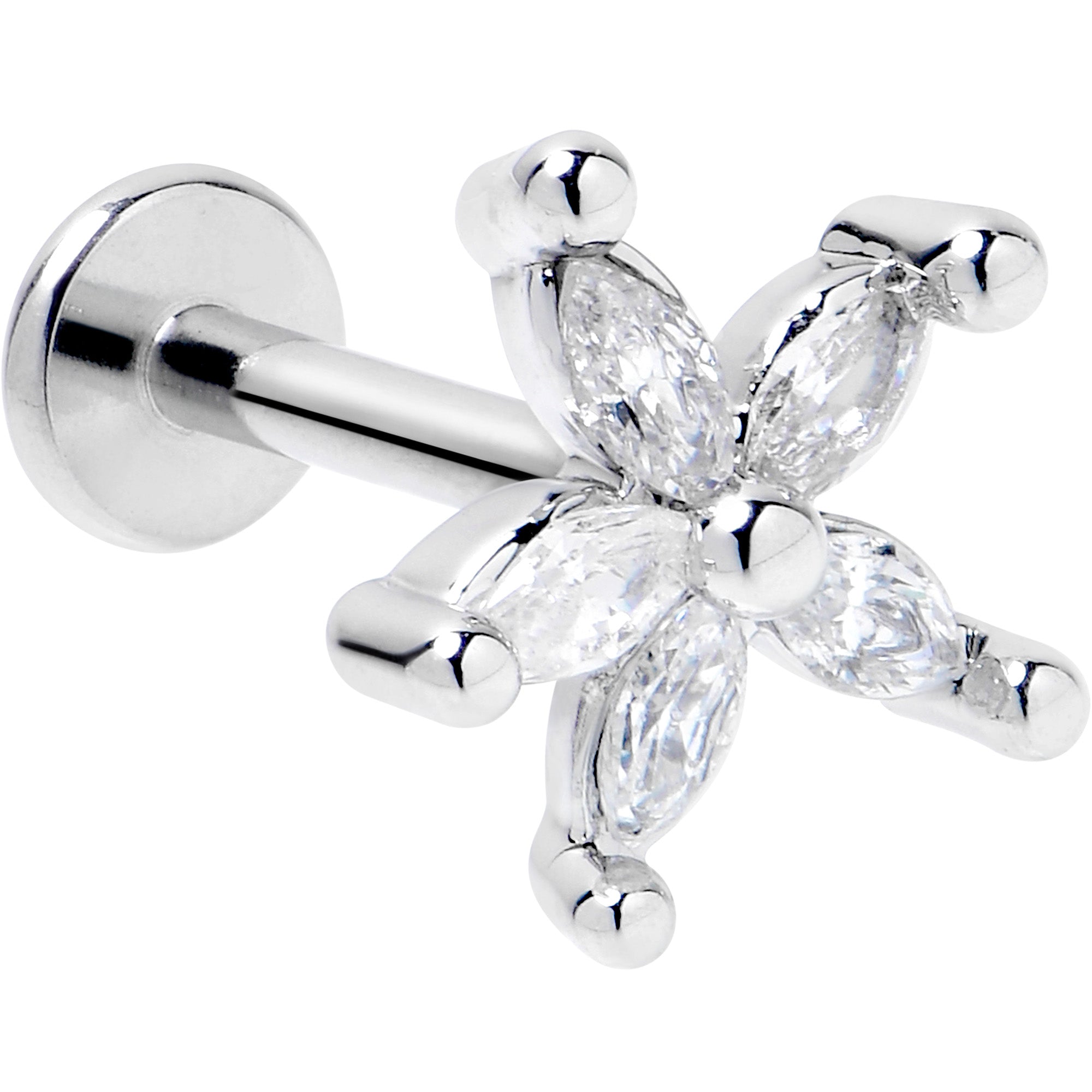 16G 5/16 Clear CZ Gem Flower Fantastic Internally Threaded Labret
