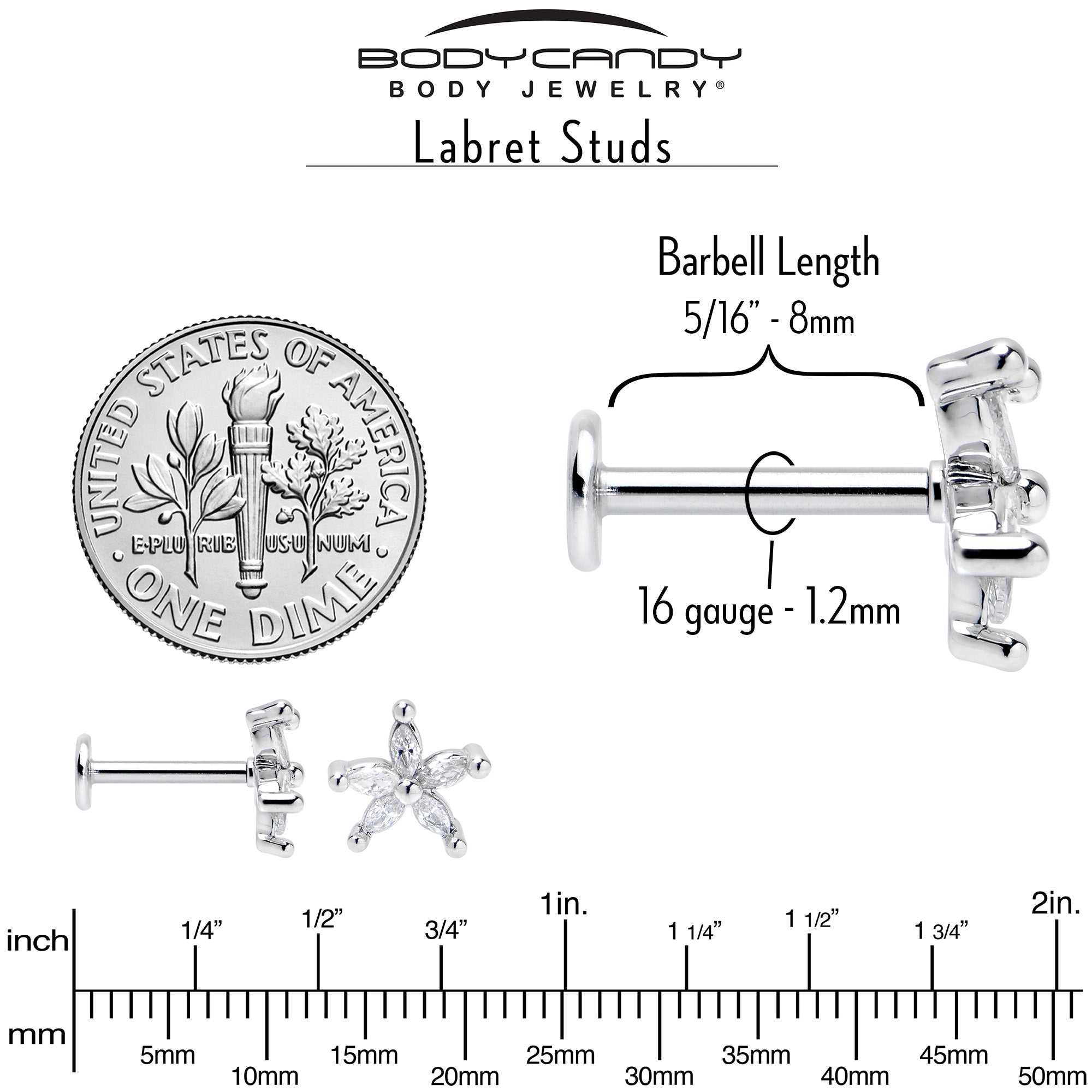 16 Gauge 5/16 Clear CZ Gem Flower Fantastic Internally Threaded Labret