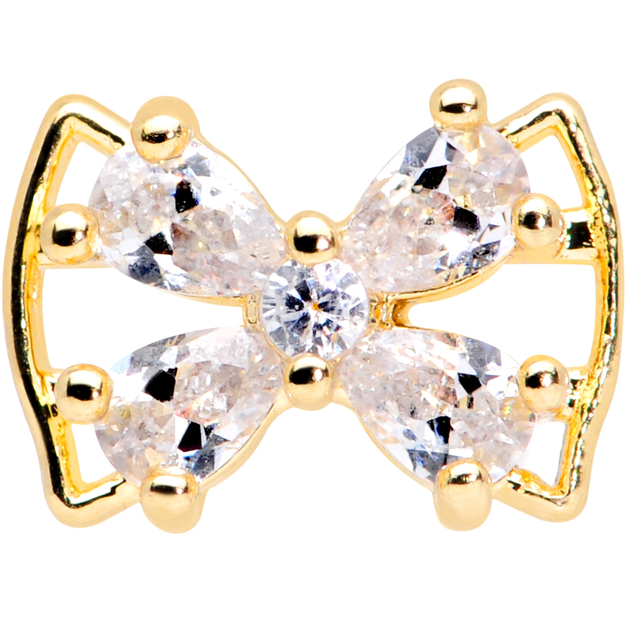 16 Gauge 5/16 Clear CZ Gem Gold Tone Beauty Bow Labret Monroe Tragus