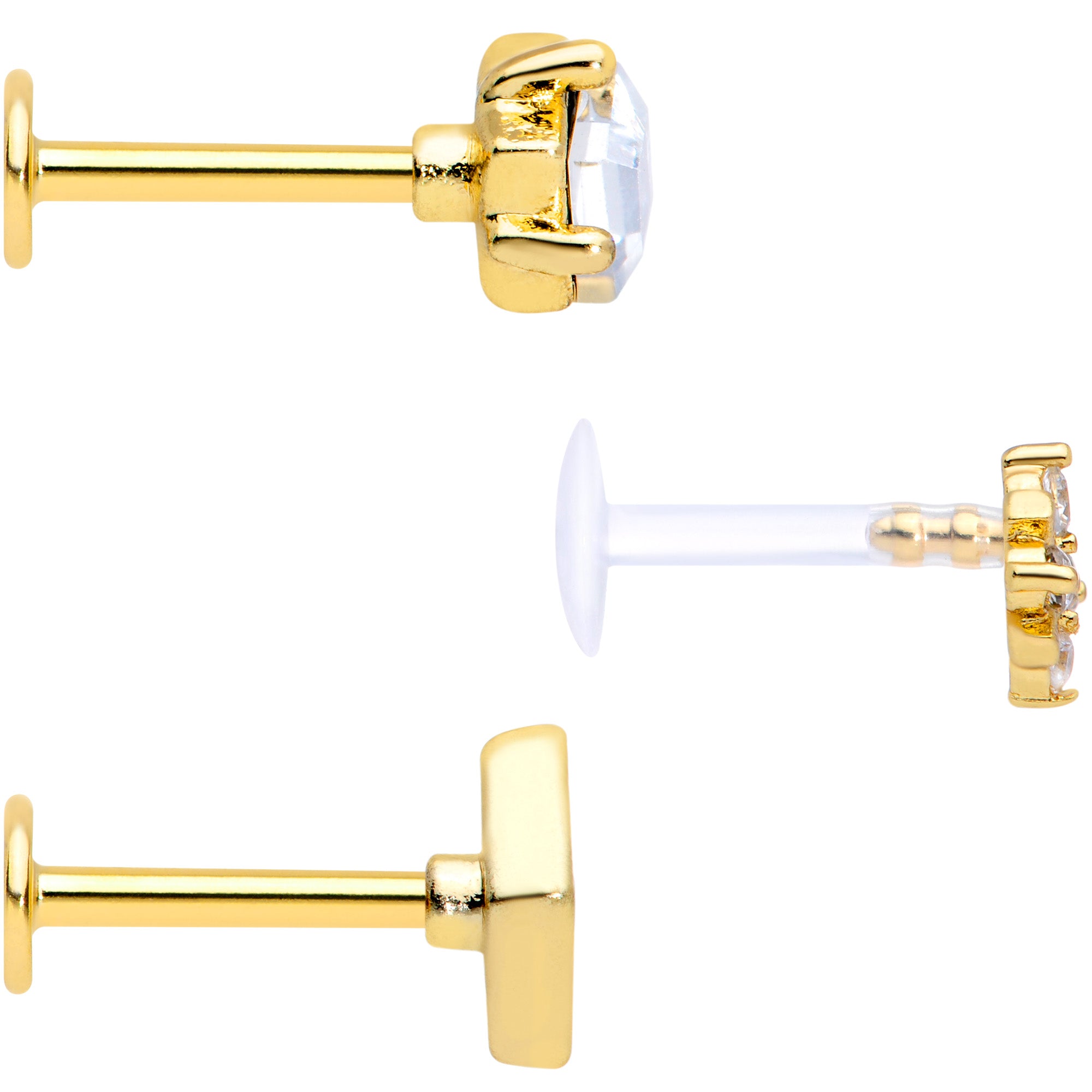 16 Gauge 5/16 Clear CZ Gem Gold Tone Geometric Labret Tragus Set of 3