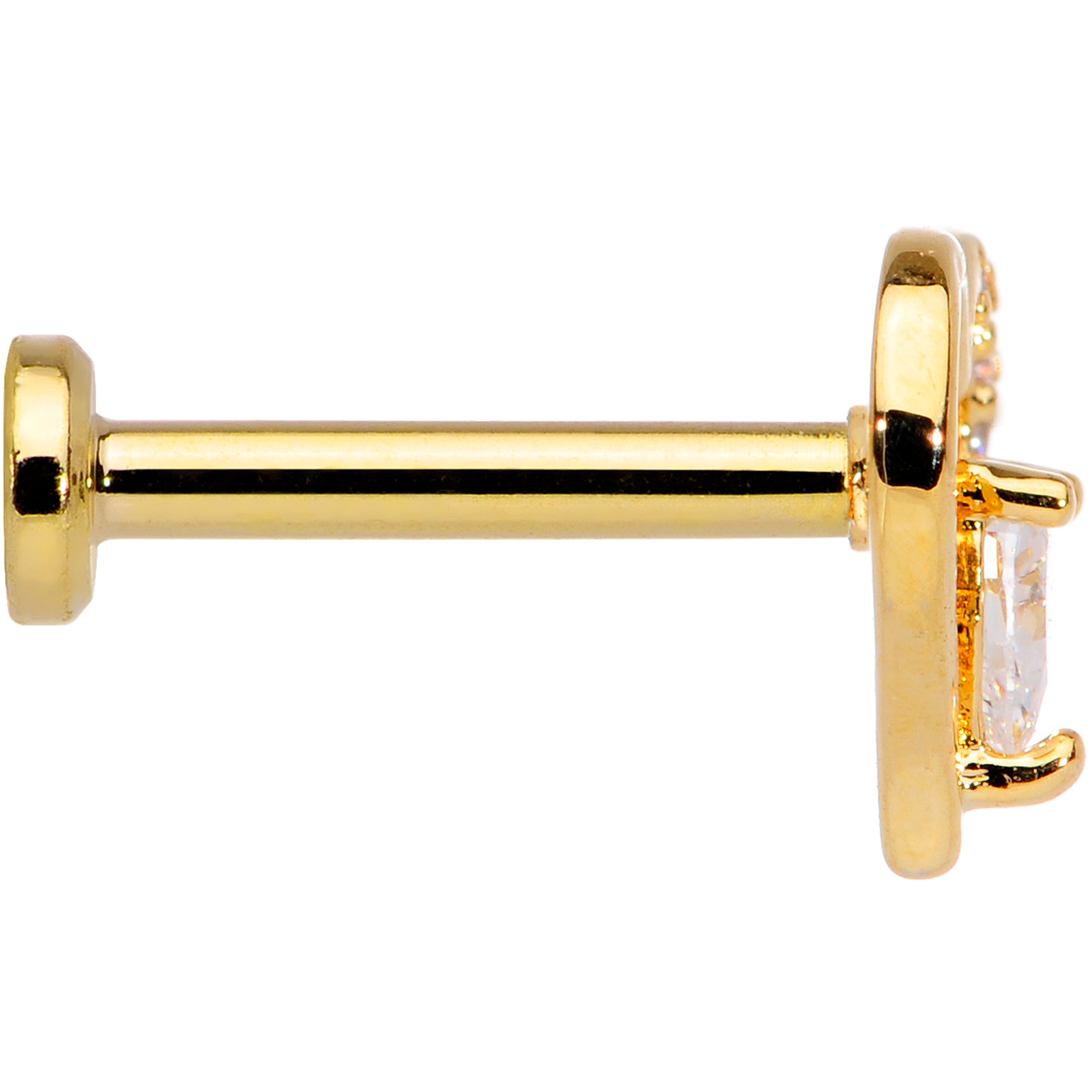 16G 5/16 Clear CZ Gem Gold Tone Heart Internally Threaded Labret