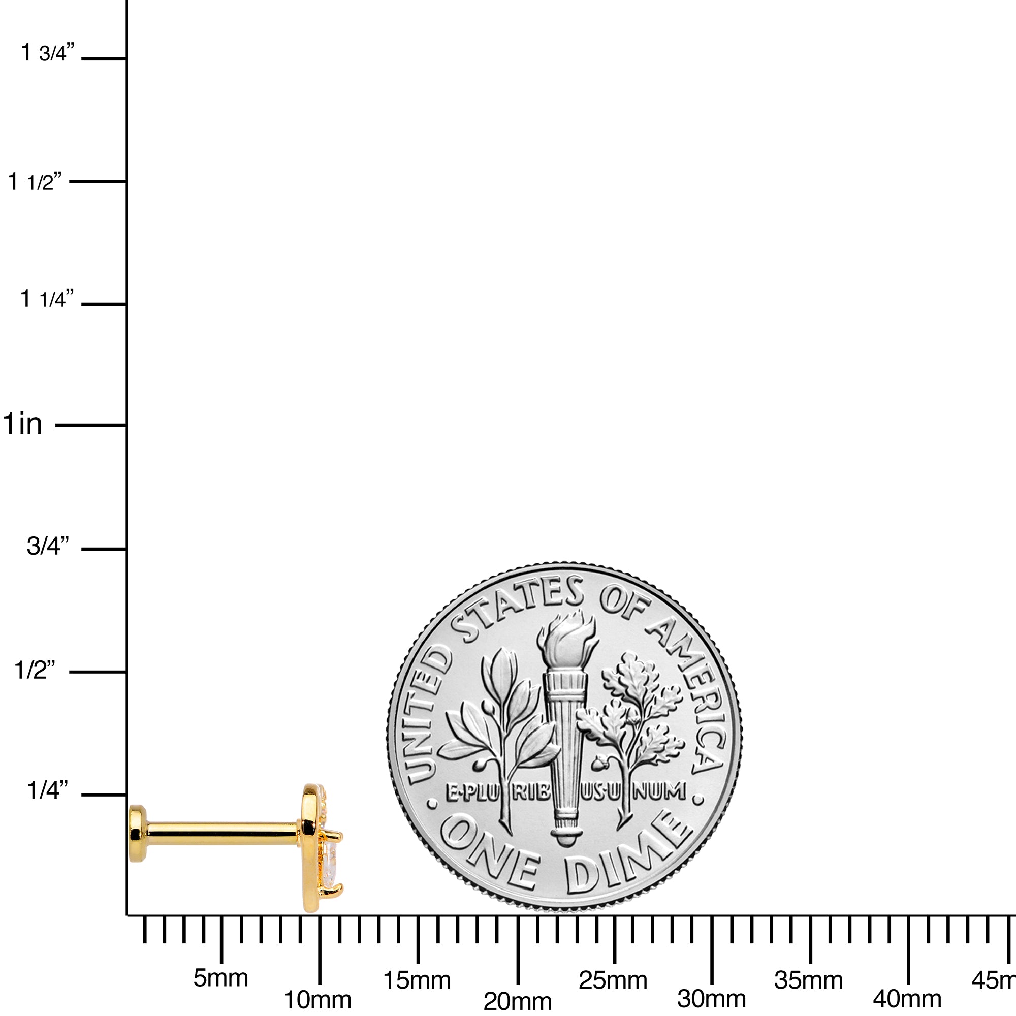 16 Gauge 5/16 Clear CZ Gem Gold Tone Heart Internally Threaded Labret