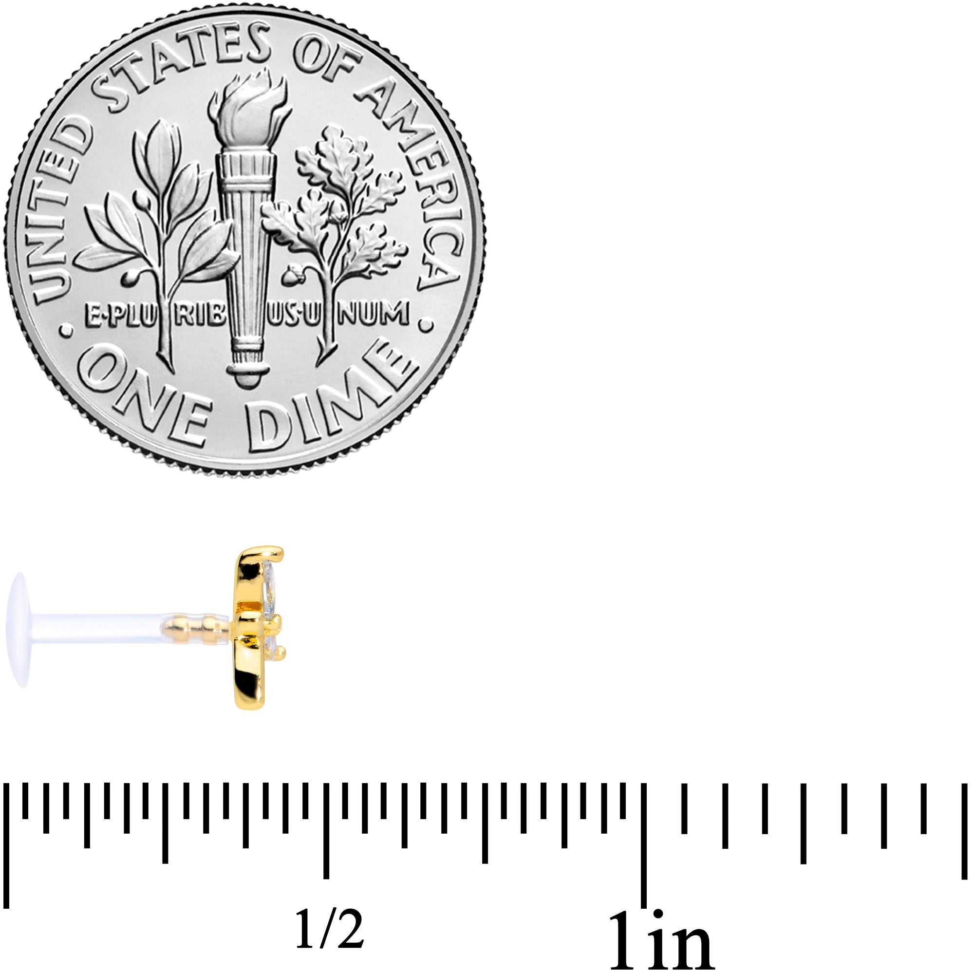 Keep your jewelry options open with this set of 16 gauge cartilage jewelry! You get two that are made with 8mm gold tone PVD over 316L surgical grade stainless steel straight barbells with flat disc ends. One features a gold tone heart charm for a classic, romantic look. The other features a flower charm with a clear cubic zirconia gem set at the center for a look of stylish whimsy. The third one is made with an 8mm flexible Bioplast straight barbell with a flat disc end. It features a dragonfly charm with clear gems set in its wings for a look that's perfect for nature lovers! This tragus jewelry can be worn in lip piercings like the labret and monroe as well as cartilage piercings like the helix, tragus, and conch. Sold as a set of three.