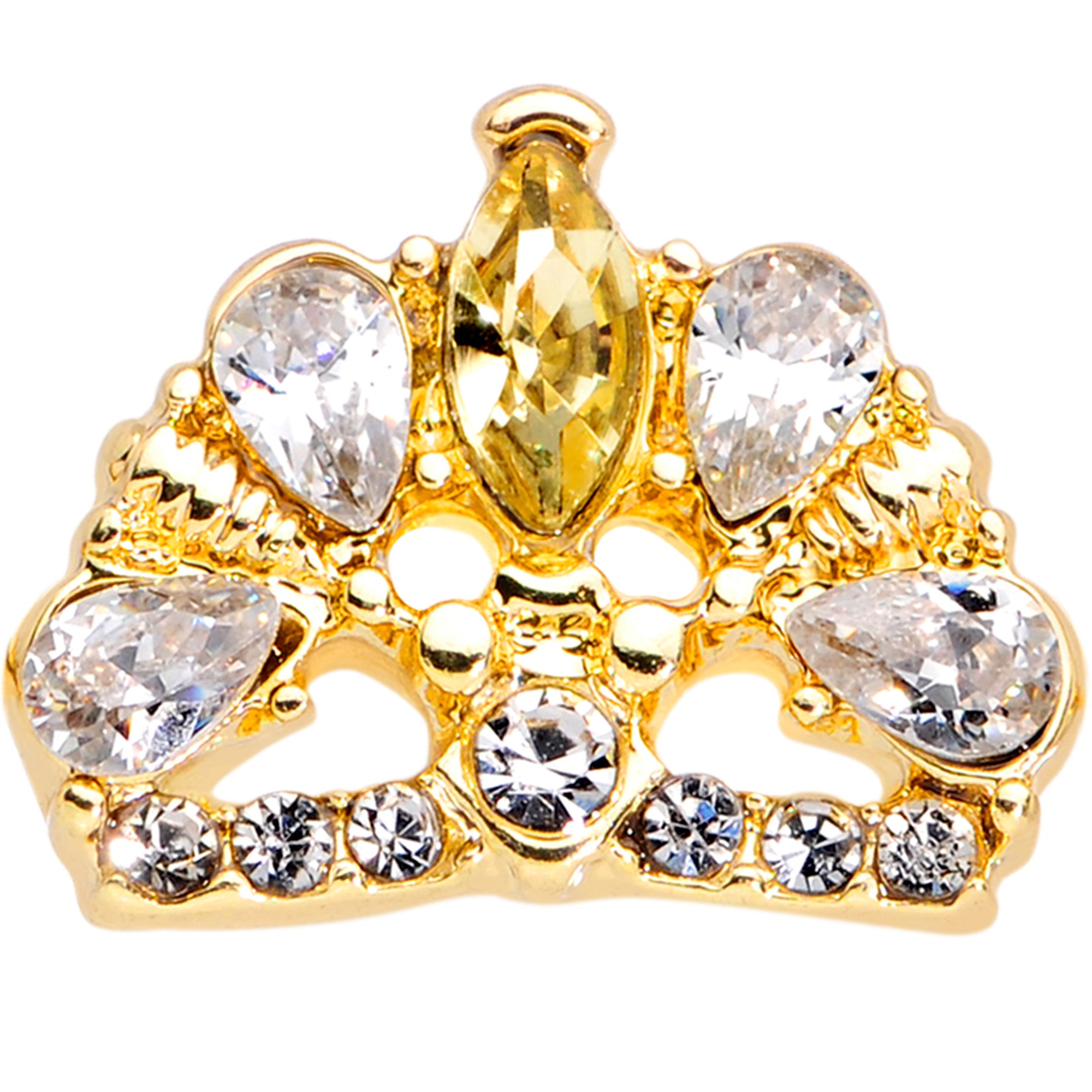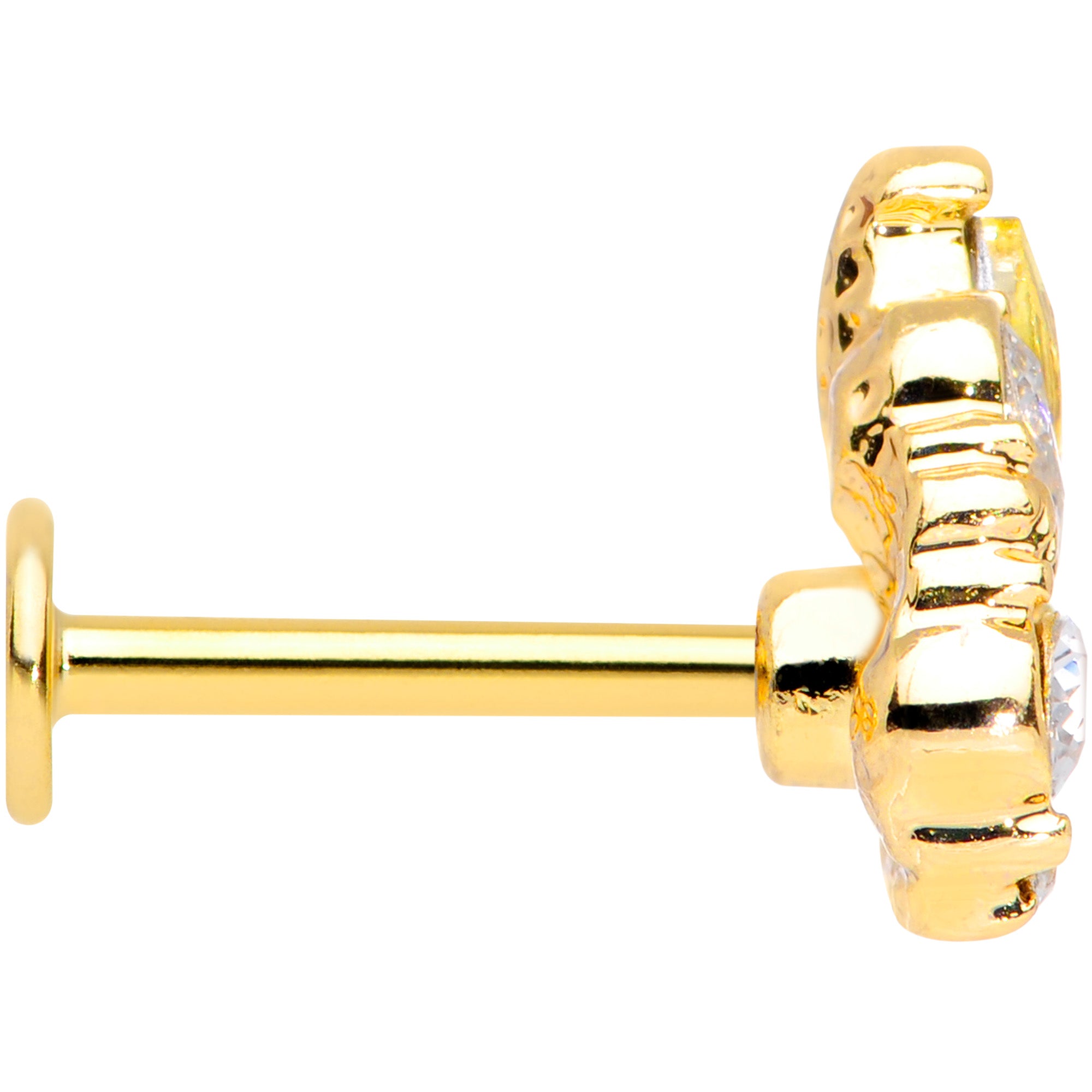 16 Gauge 5/16 Clear CZ Gem Gold Tone Lavish Crown Labret Monroe Tragus