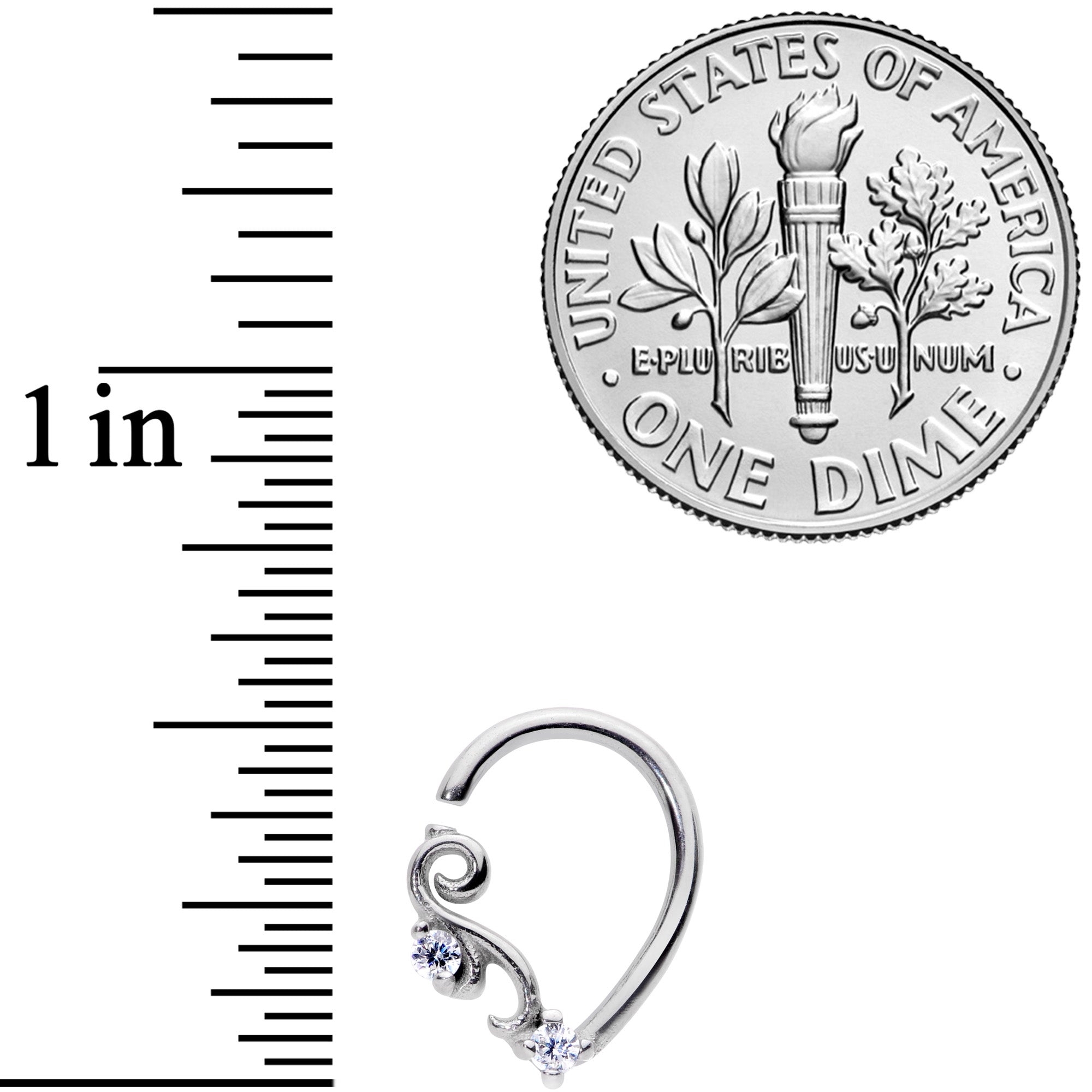 Half a heart isn't just better than none, it's better than anything with this 16 gauge cartilage earring! It's 8mm and made with 316L surgical grade stainless steel. It features a half-heart shape with clear cubic zirconia gems for an elegant appearance. This tragus earring is designed to be worn in the right ear and is super easy to insert and remove - just give it a light twist, insert it into your piercing and gently bend it closed. You'll love that because it works so well in multiple piercings including cartilage piercings like the daith, tragus, rook, and helix as well as your septum too!
