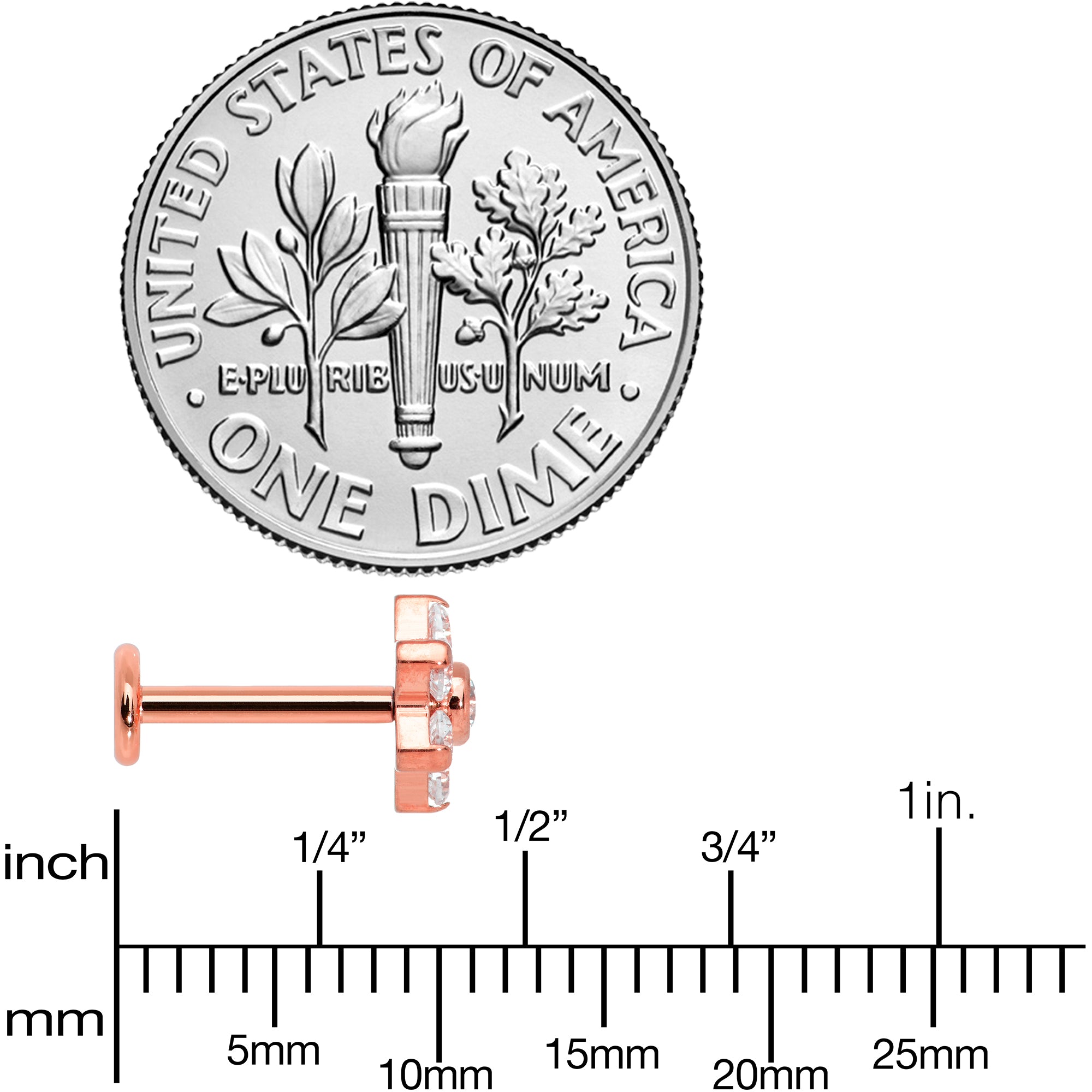 Hypoallergenic jewelry for sensitive skin16 Gauge 5/16 Clear CZ Gem Rose Gold Hue G23 Titanium Flower Labret