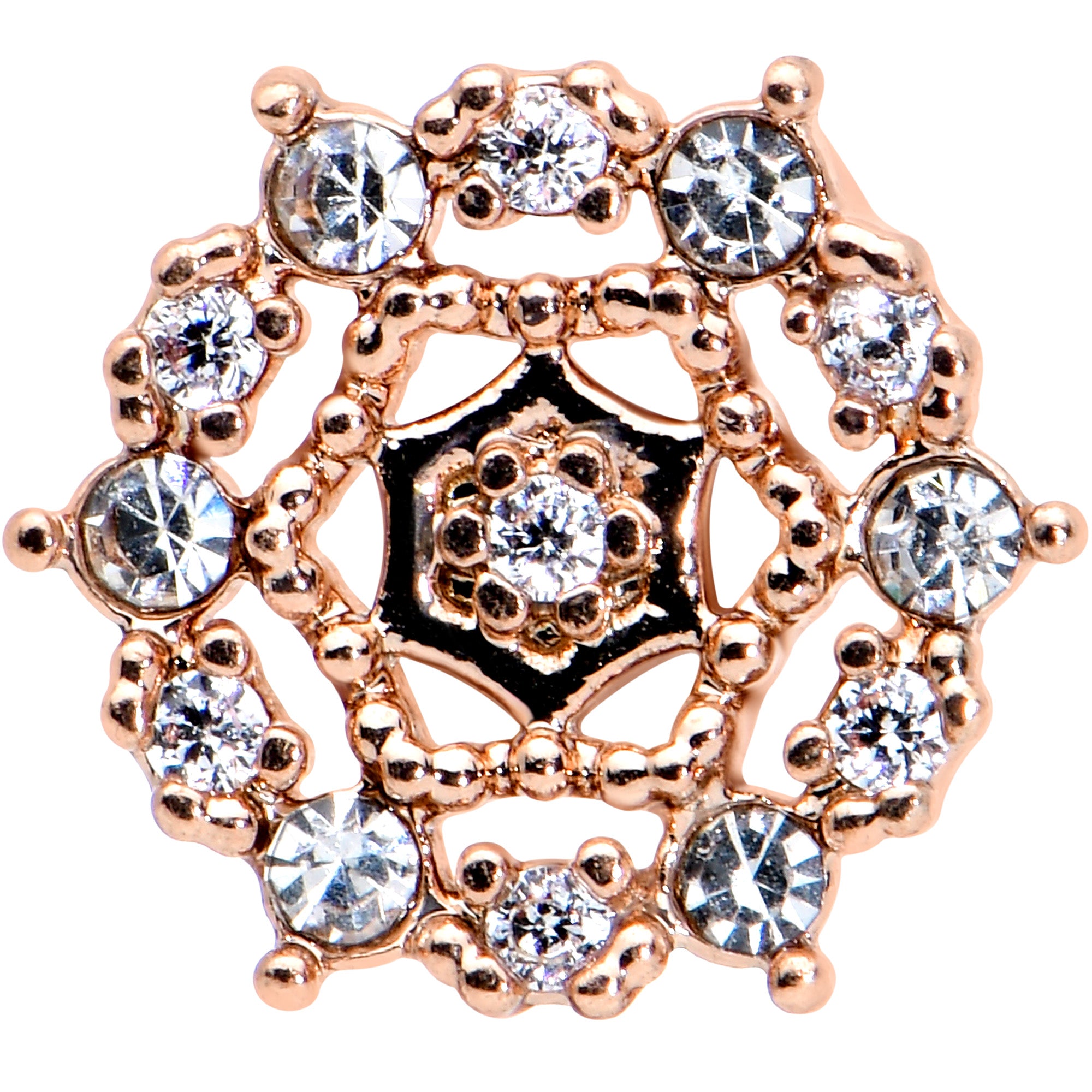 16G 5/16 Clear CZ Gem Rose Gold Tone Geometric Web Labret Tragus