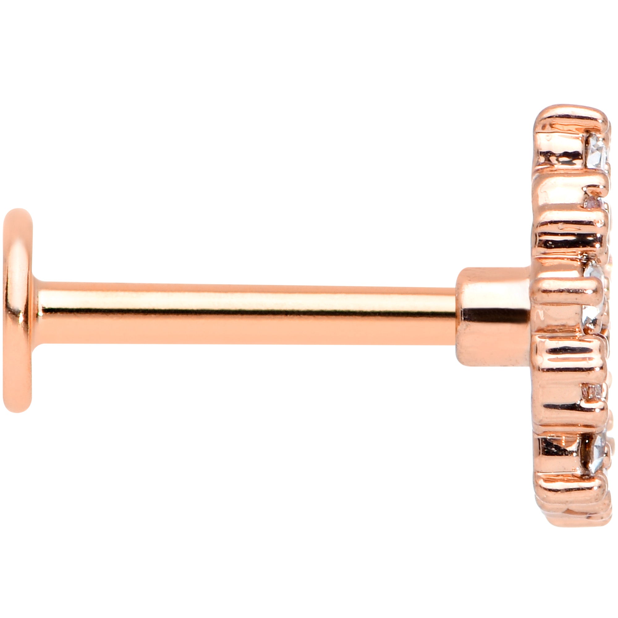 16 Gauge 5/16 Clear CZ Gem Rose Gold Tone Geometric Web Labret Tragus