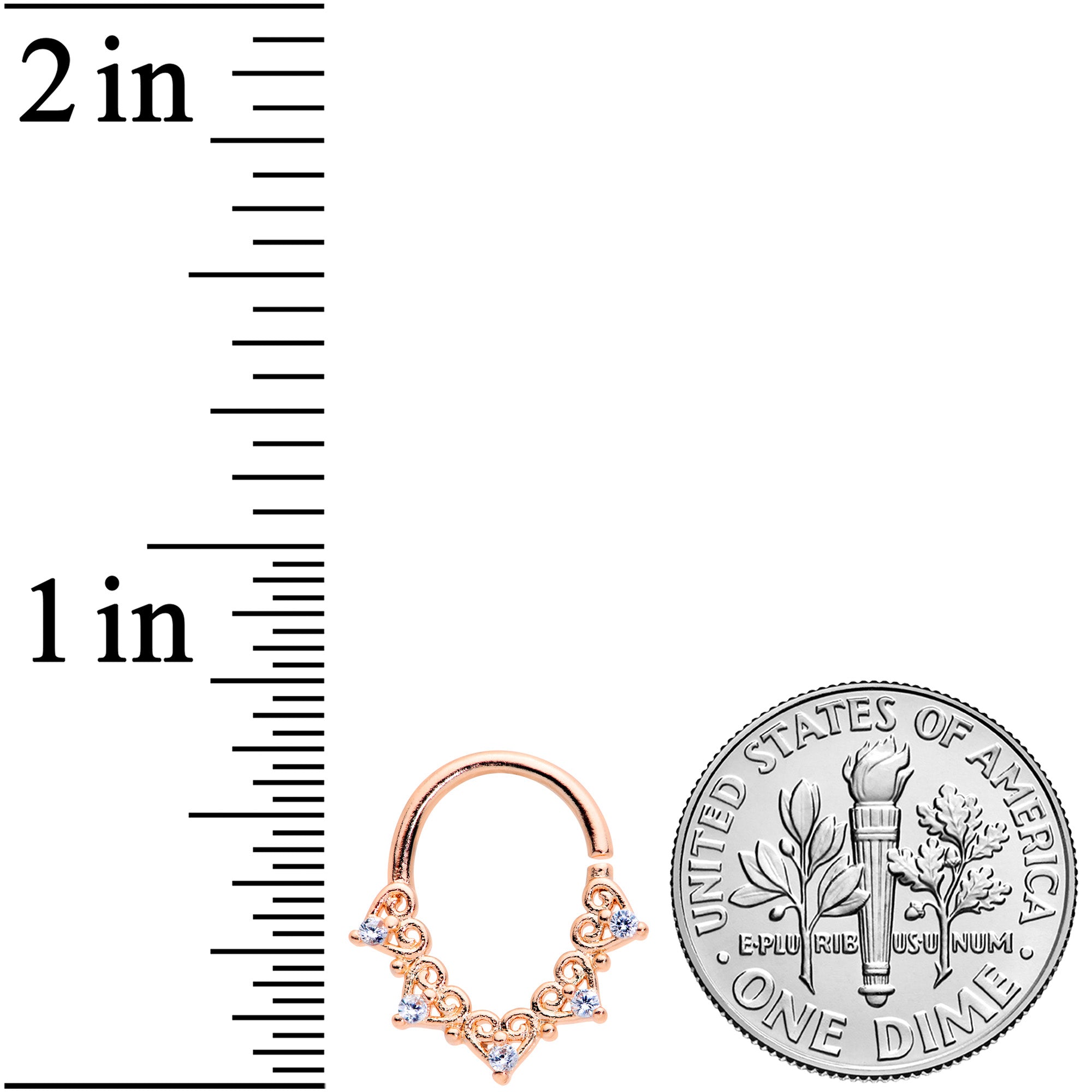 16G 5/16 Clear CZ Gem Rose Gold Tone Heart Filigree Closure Ring