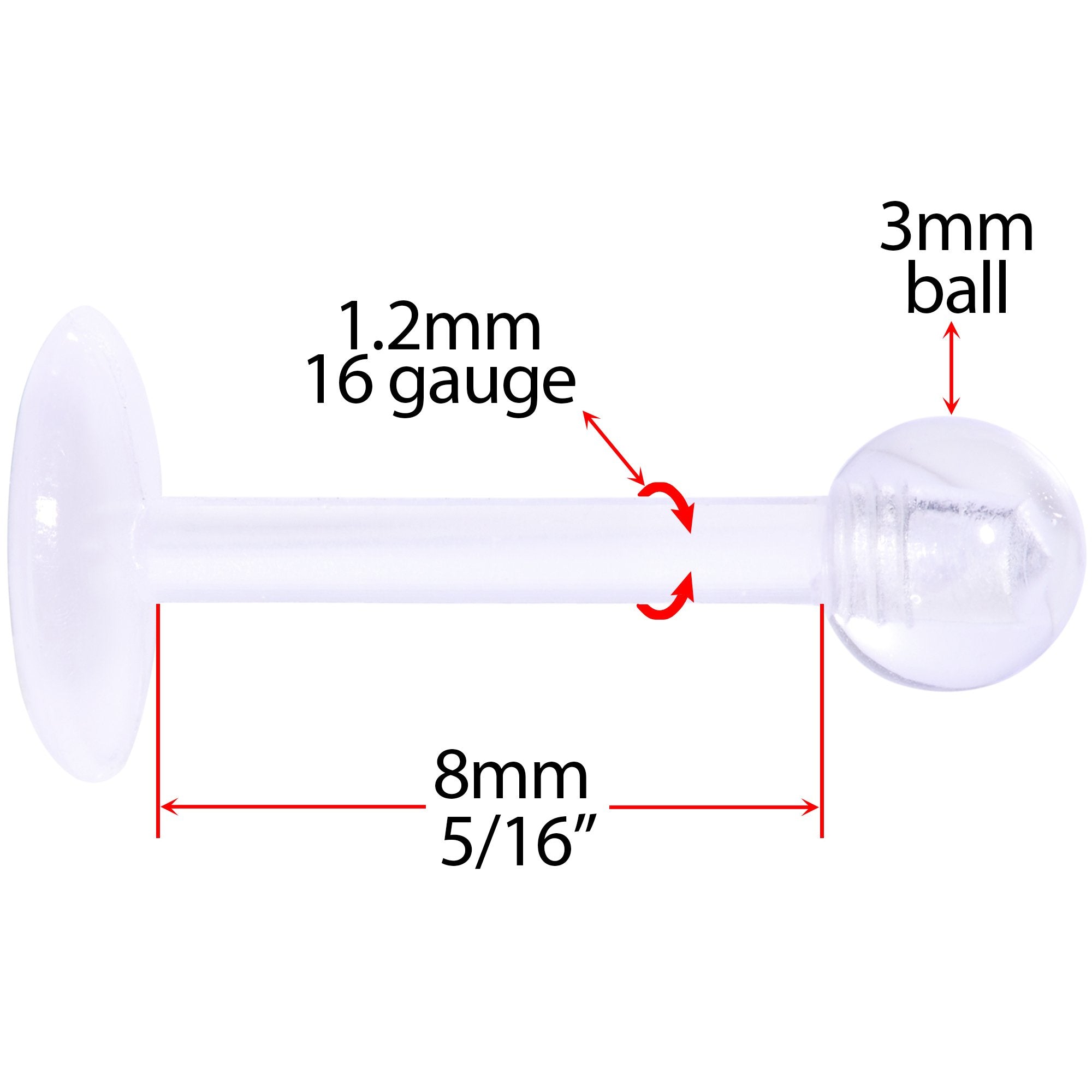Hypoallergenic Retainer Body Jewelry16 Gauge 5/16" Clear Flexible Bioplast Labret Monroe Tragus Retainer