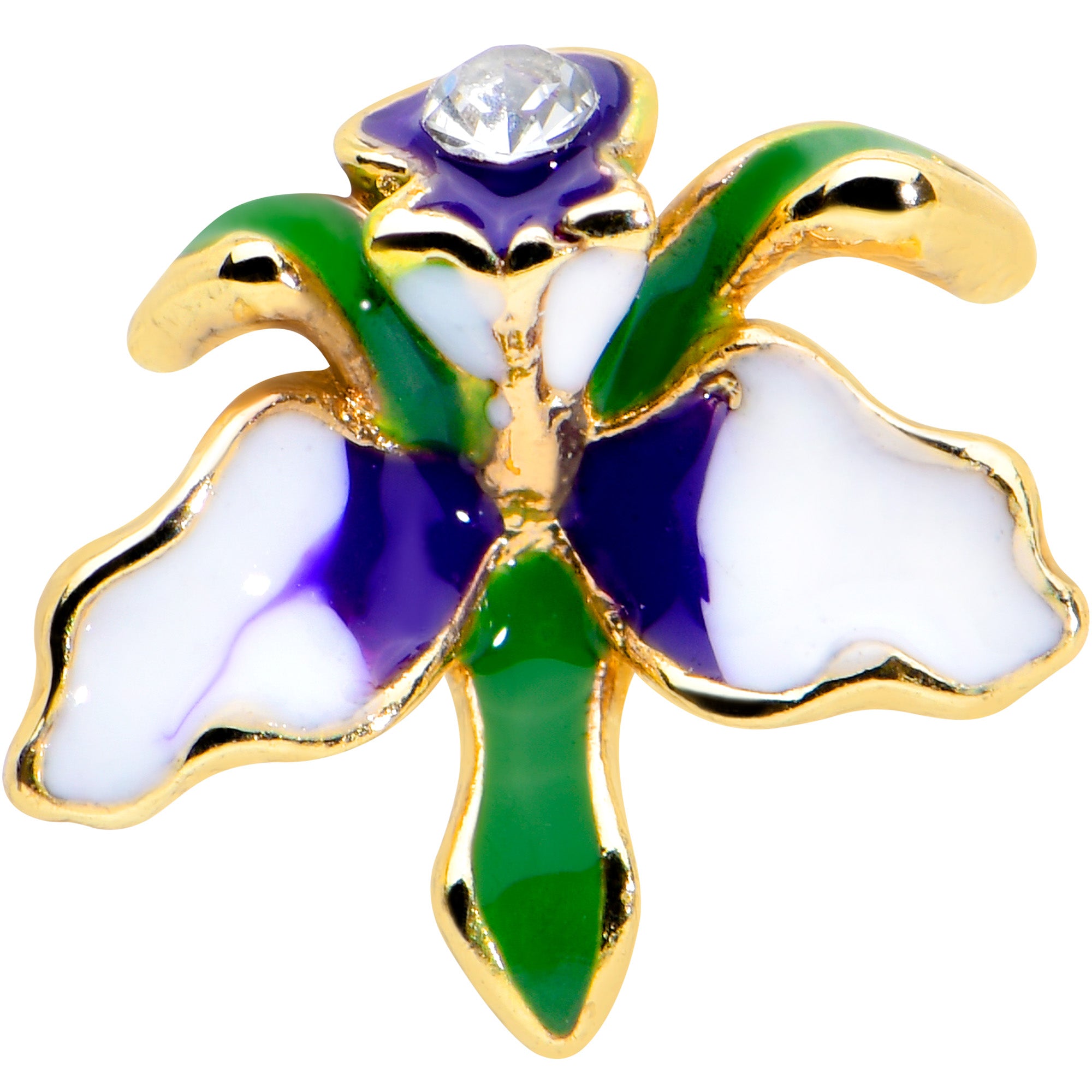 16 Gauge 5/16 Clear Gem Gold Tone Iris Flower Labret Monroe Tragus
