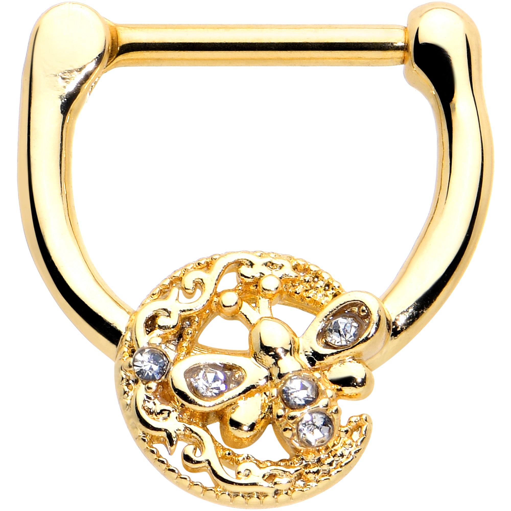 16 Gauge 5/16 Clear Gem Gold Tone Lunar Dragonfly Cartilage Clicker