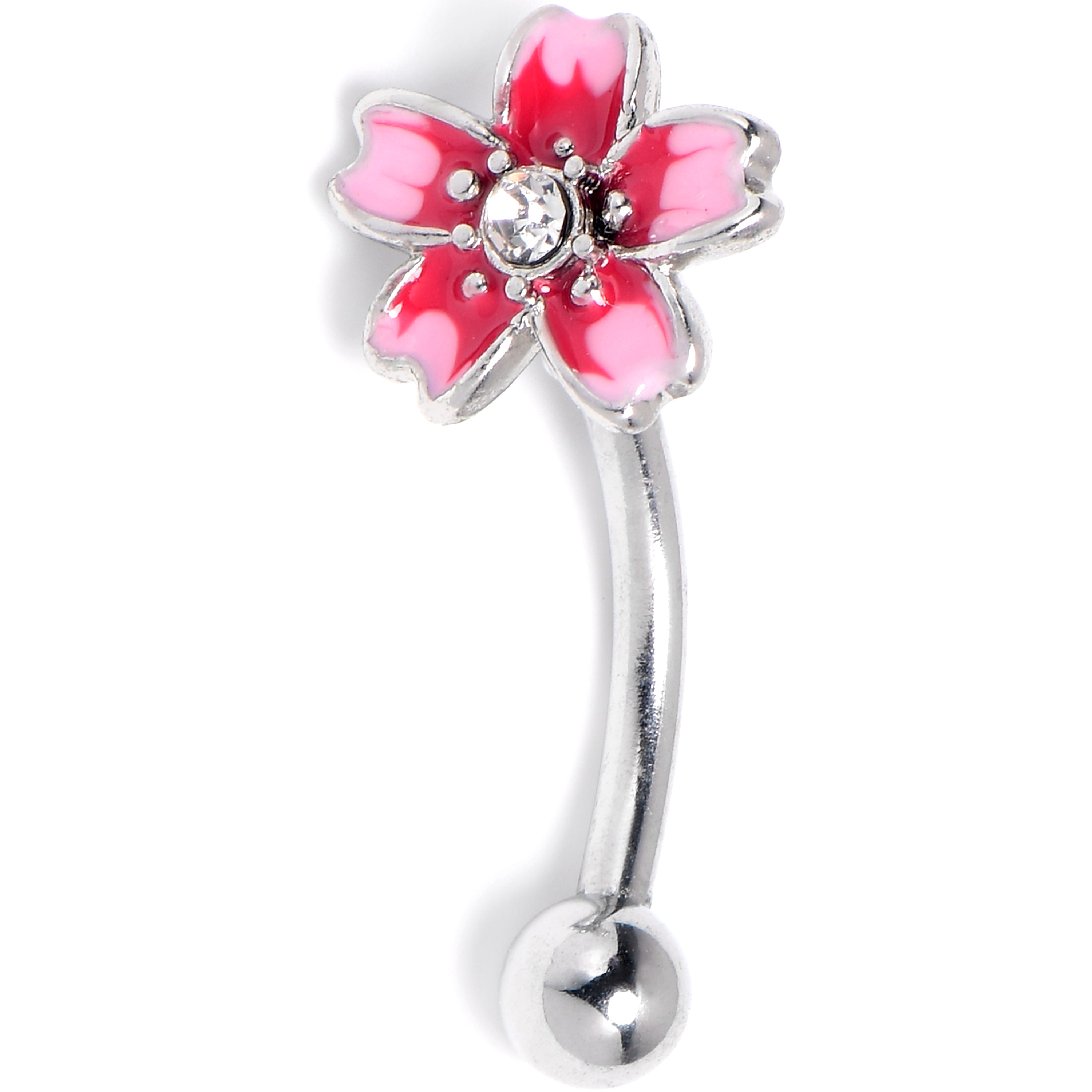 16G 5/16 Clear Gem Perfectly Pink Flower Curved Eyebrow Ring
