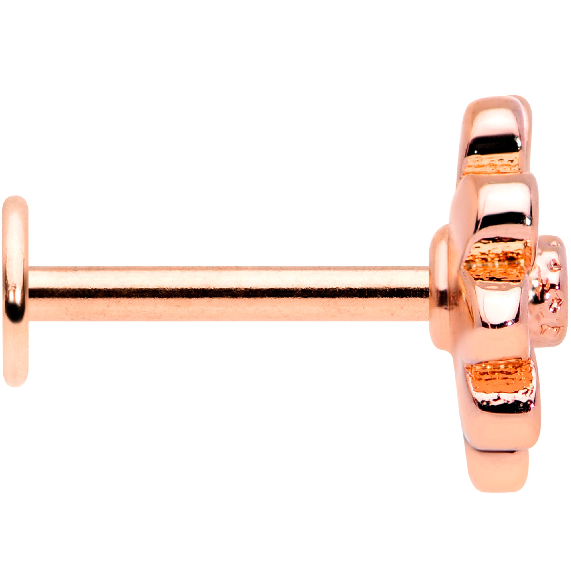 16 Gauge 5/16 Clear Gem Rose Gold Hue Pink Flower Labret Monroe Tragus