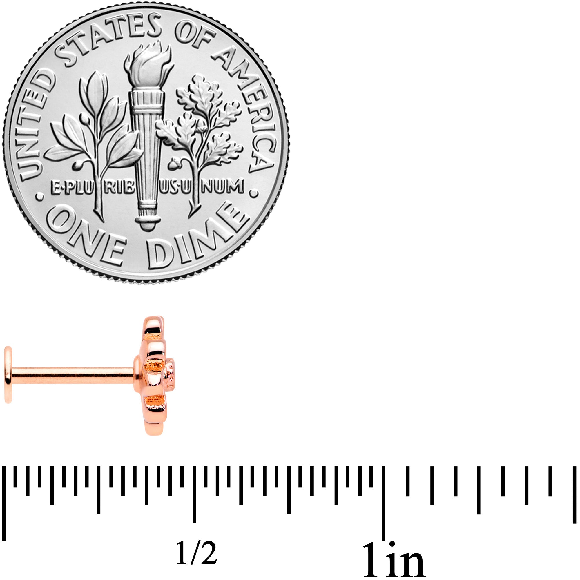 You'll be feeling perky and pink with this 16 gauge lip ring in your cartilage piercings! It's made with an 8mm rose gold tone PVD over 316L surgical grade stainless steel straight barbell with a flat disc end. It features a pink flower charm, set at the center with a clear gem. It's a perfect pink look for spring! And you can flaunt this flower in multiple piercings including lip, monroe, tragus, helix, and some conch piercings. Once you don this daisy, you're sure to be delighted with this floral themed cartilage jewelry!