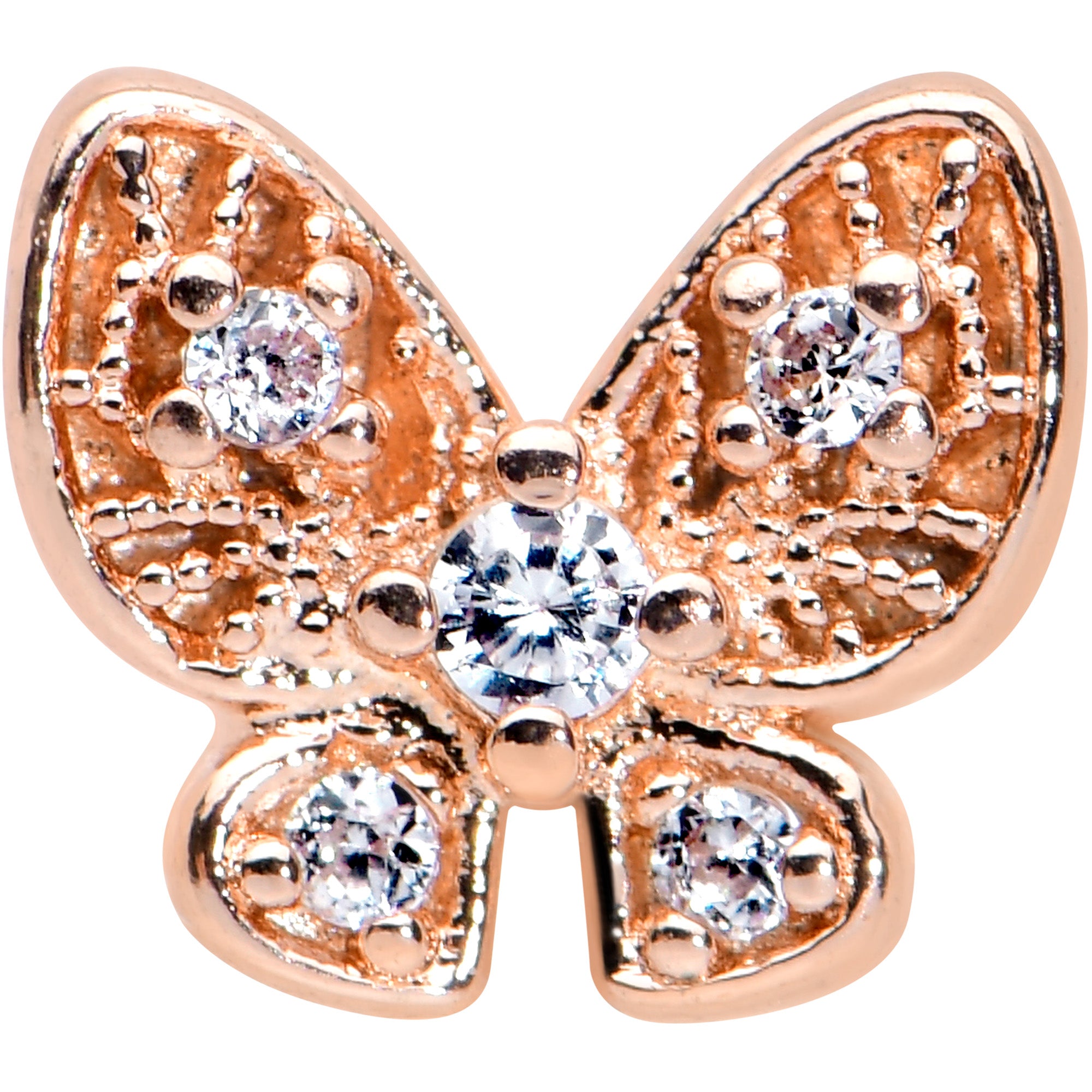 16 Gauge 5/16 Clear Gem Rose Gold Tone Airy Butterfly Labret Tragus