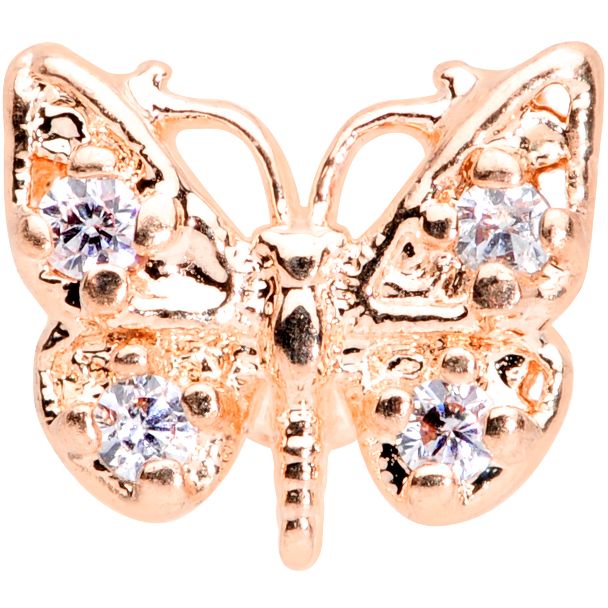 16 Gauge 5/16 Clear Gem Rose Gold Tone Butterfly Labret Monroe Tragus