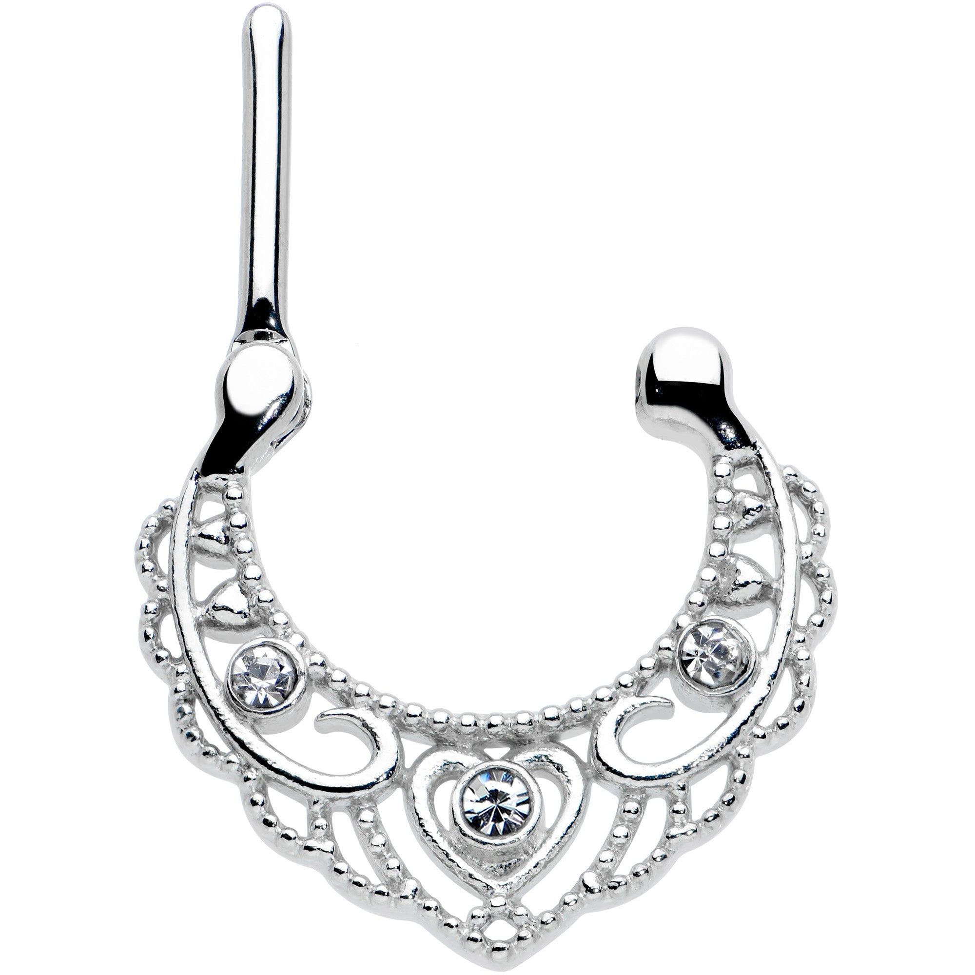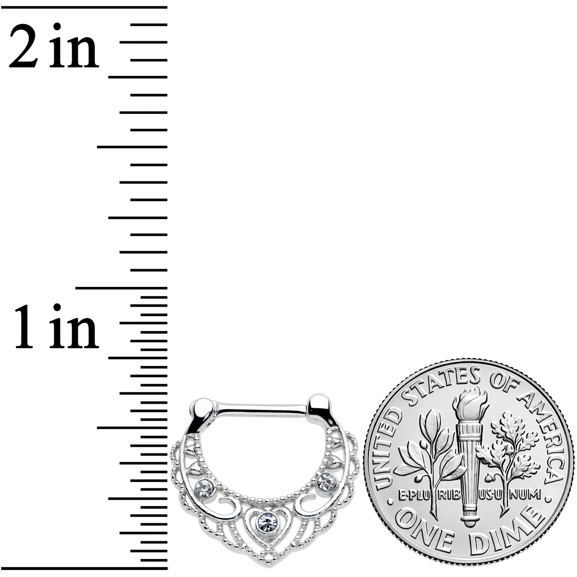 16 Gauge 5/16 Clear Gem Textured Baroque Heart Cartilage Clicker