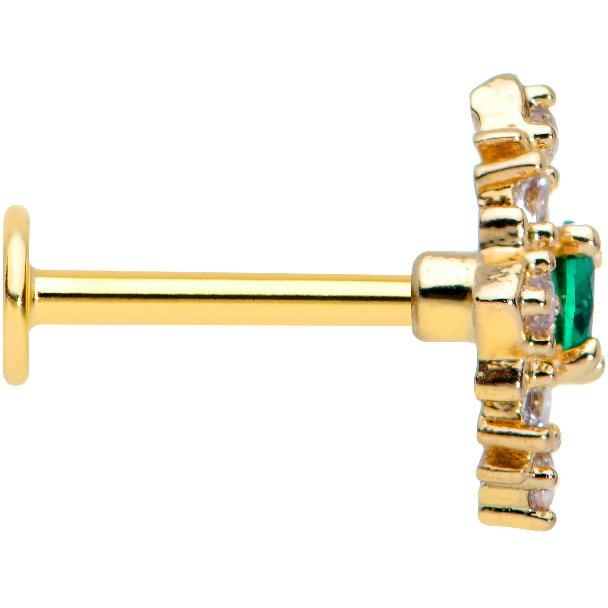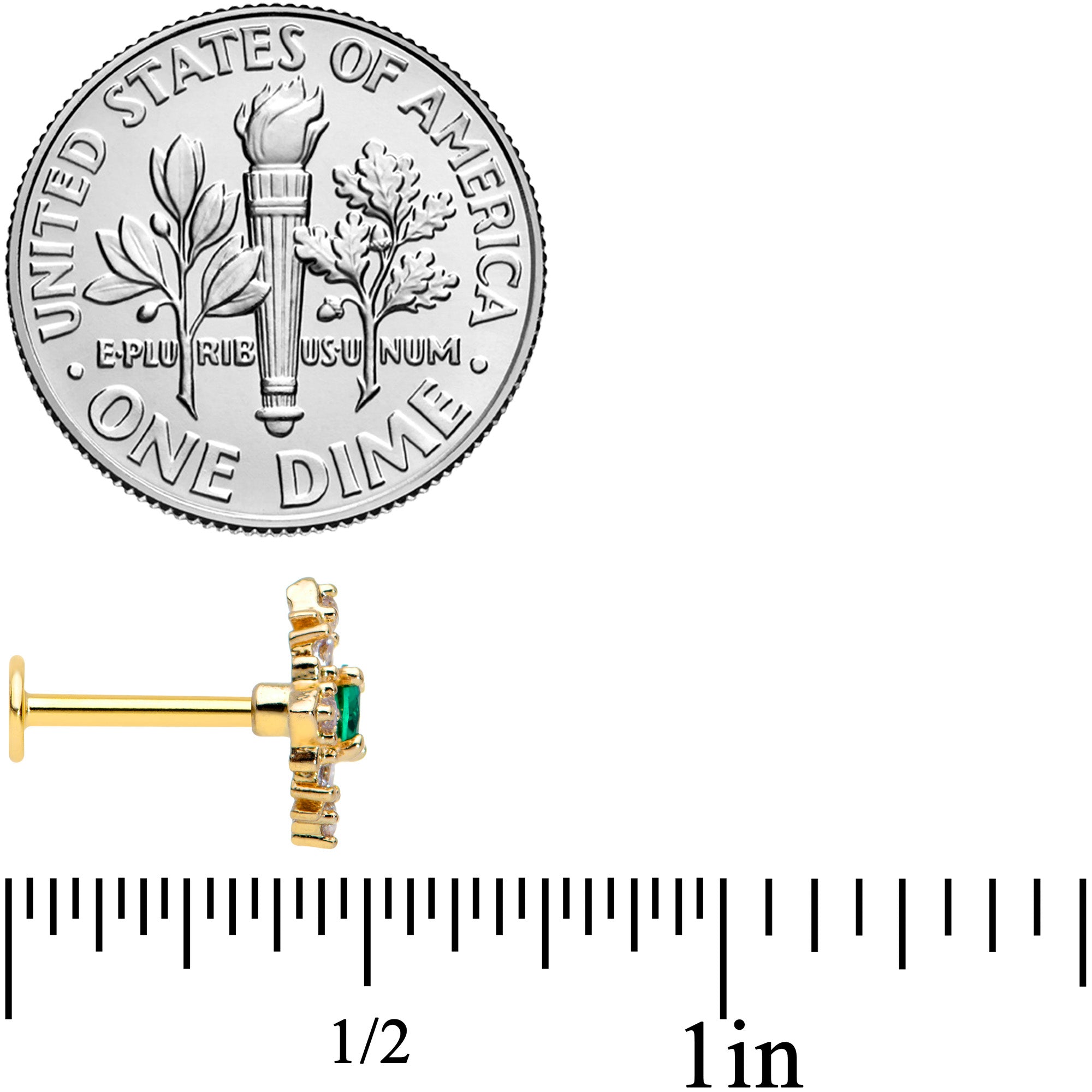 16G 5/16 Clear Green Gem Art Deco Style Labret Monroe Tragus