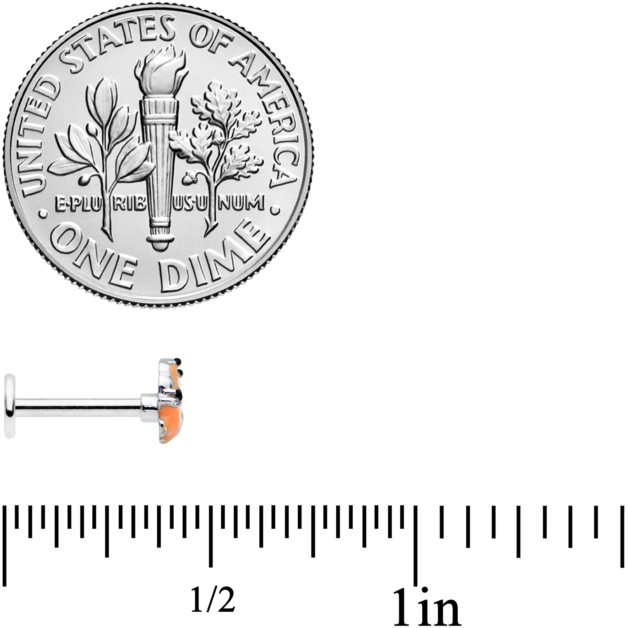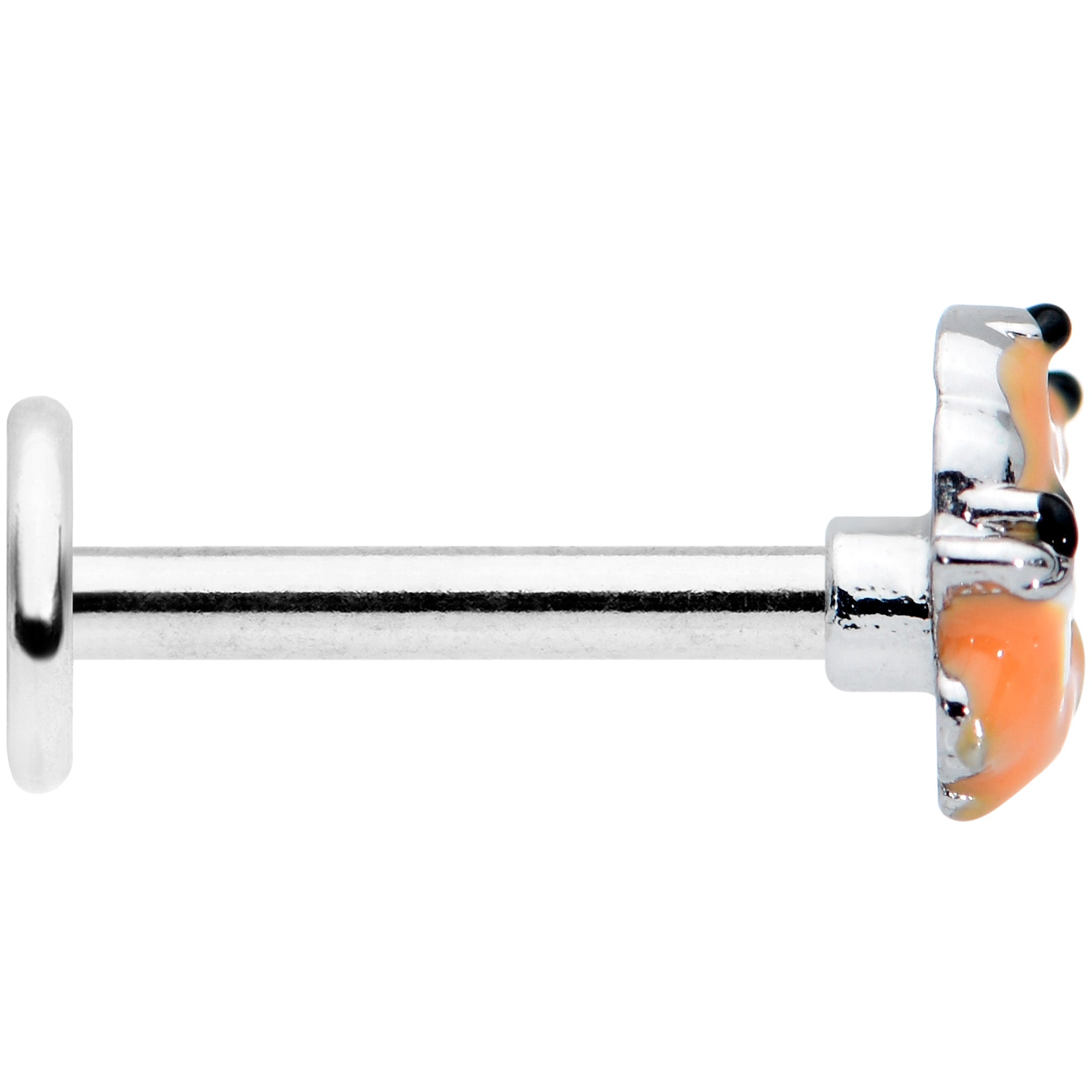 Get a foxy new look for your cartilage piercing with this 16 gauge lip ring! It's made with an 8mm durable 316L surgical grade stainless steel straight barbell with a flat disc end. It features a fox charm, inlaid in orange and black for a realistic touch. The fox is further embellished with colorful leaf detailing, perfect for the Autumn season and you can wear it in multiple piercings including lip, monroe, tragus, helix, and some conch piercings. Fall in love with a fox when you're rocking this foxy Fall-themed cartilage jewelry.