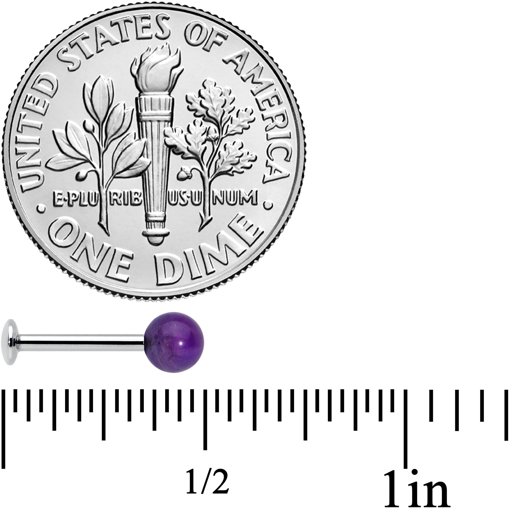 Make your cartilage piercings pretty with this 16 gauge tragus jewelry! It's made with an 8mm internally threaded 316L surgical grade stainless steel straight barbell with a flat disc end. It features a 4mm ball end made with purple amethyst for a look that's both elegant and a little bit mystical. You can even rock this rock in multiple piercings including lip, monroe, tragus, helix, and some conch piercings! Whether you're a rockhound, a hippie, or a lover of nature, this gorgeous cartilage piercing ring is sure to leave you happy!