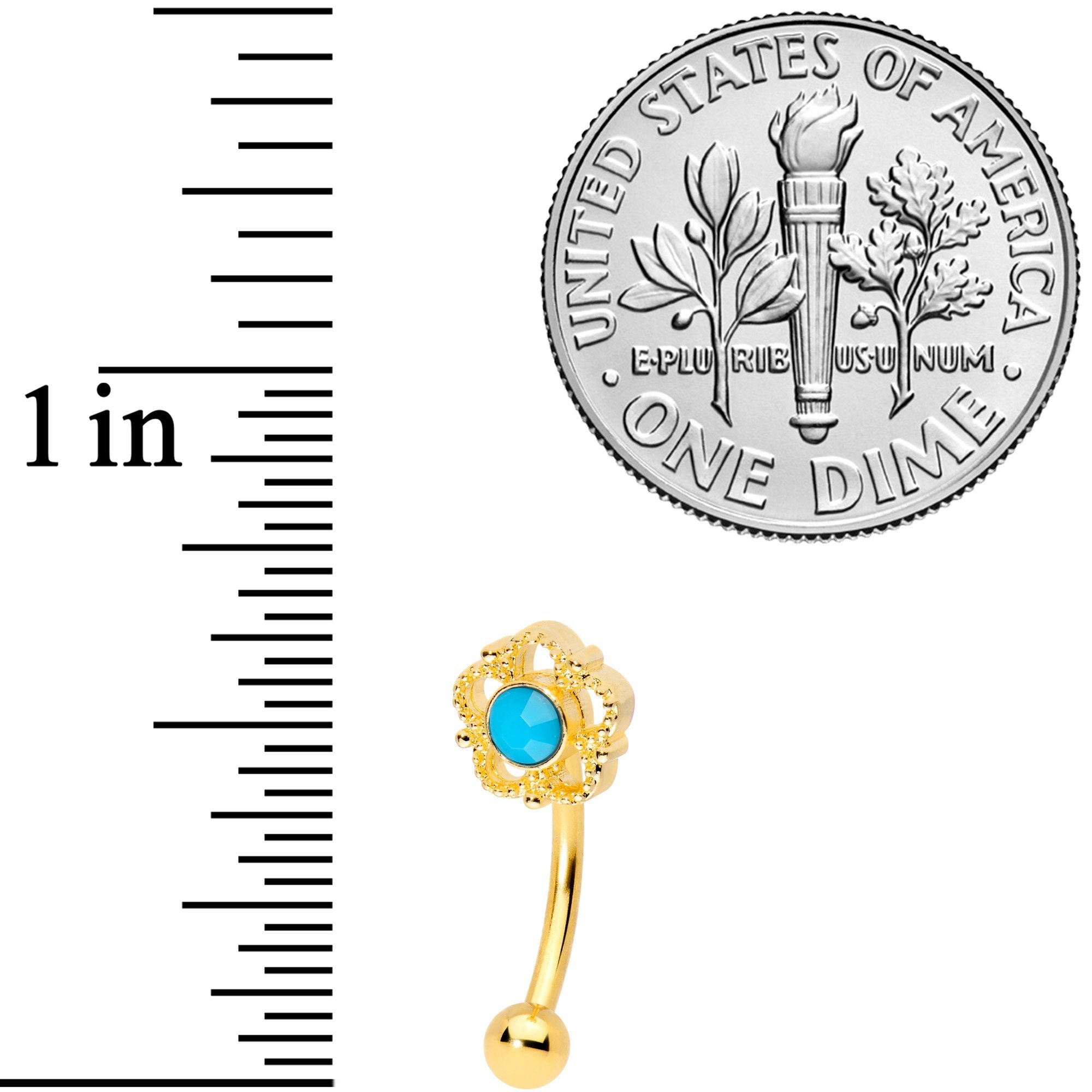 16 Gauge 5/16 Faux Turquoise Gold Tone Flower Curved Eyebrow Ring