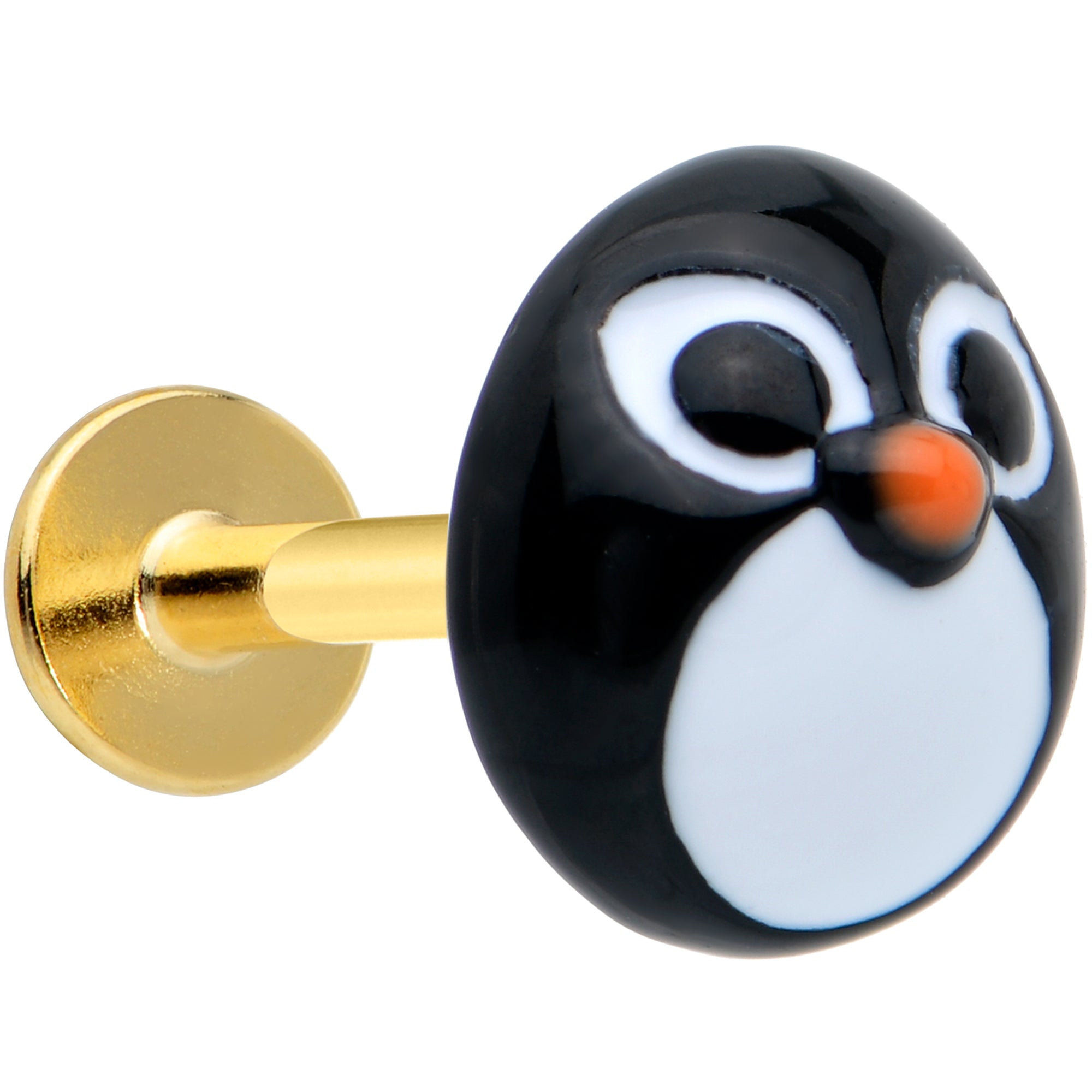 16 Gauge 5/16 Gold Hue Round Penguin Face Holiday Labret Monroe Tragus