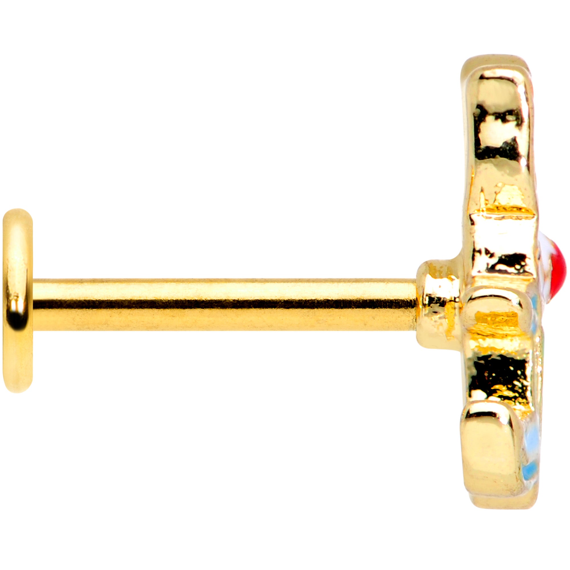 16 Gauge 5/16 Gold Tone Blue White Mermaid Cat Labret Monroe Tragus