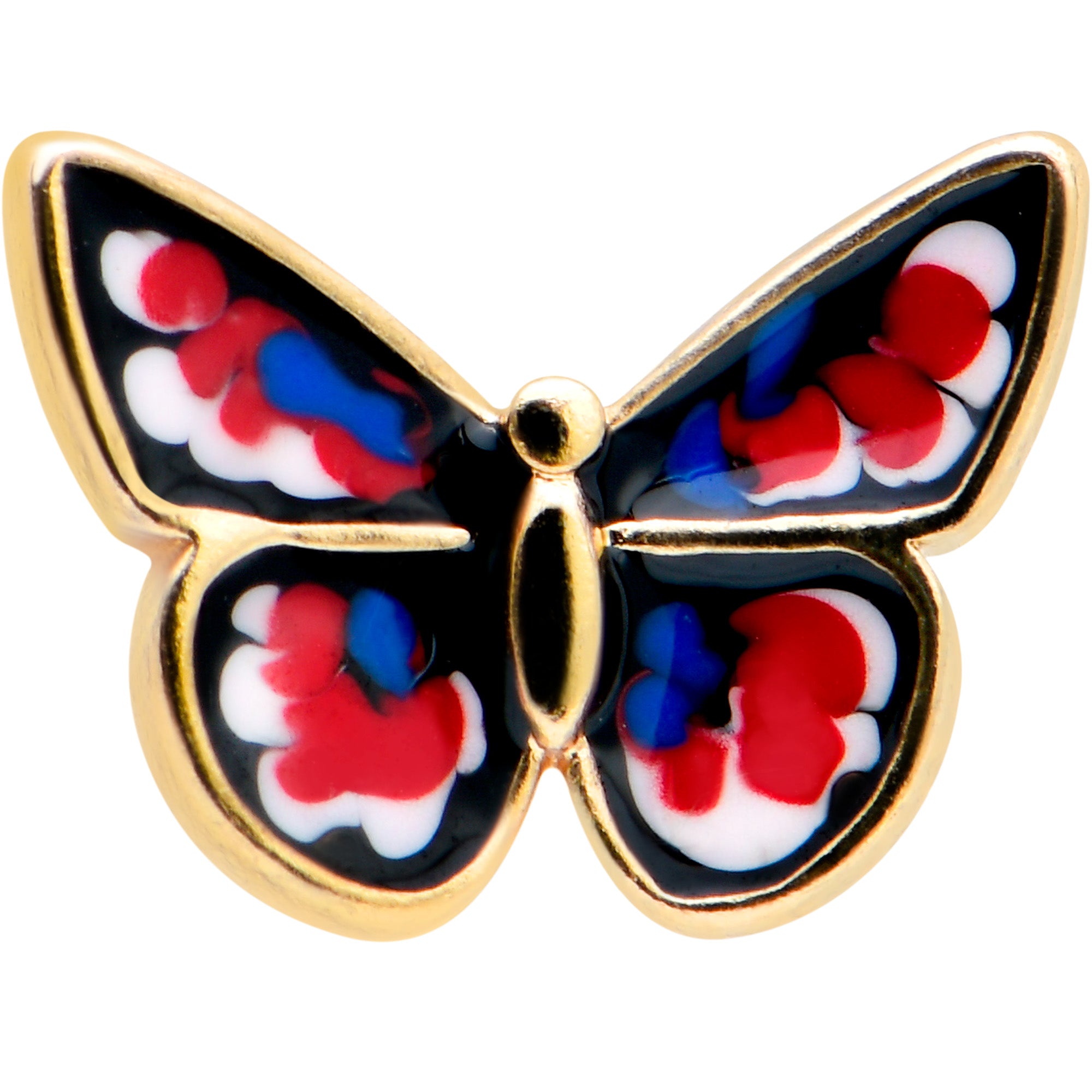 16G 5/16 Gold Tone Red White Blue Butterfly Labret Monroe Tragus