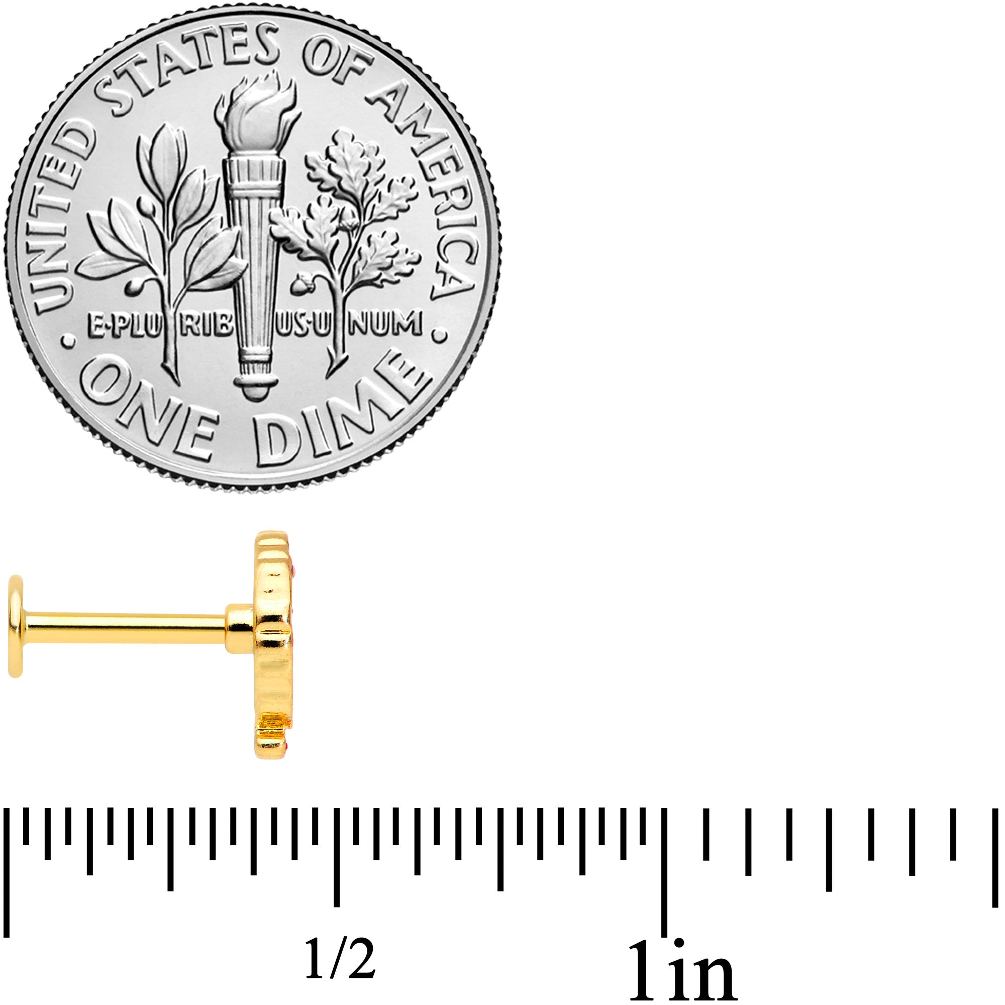 If you can't wait to gobble up some turkey this Thanksgiving then you will love this pretty 16 gauge lip ring with holiday style! Made with an 8mm gold tone PVD over 316L surgical grade stainless steel straight barbell with a flat disc end, this cartilage jewelry features a full color Thanksgiving turkey charm that you will love! You can rock this turkey in multiple piercings including lip, monroe, tragus, helix, and some conch piercings. You certainly won't feel like a turkey when you're wearing this colorful cartilage ring for the holiday season!