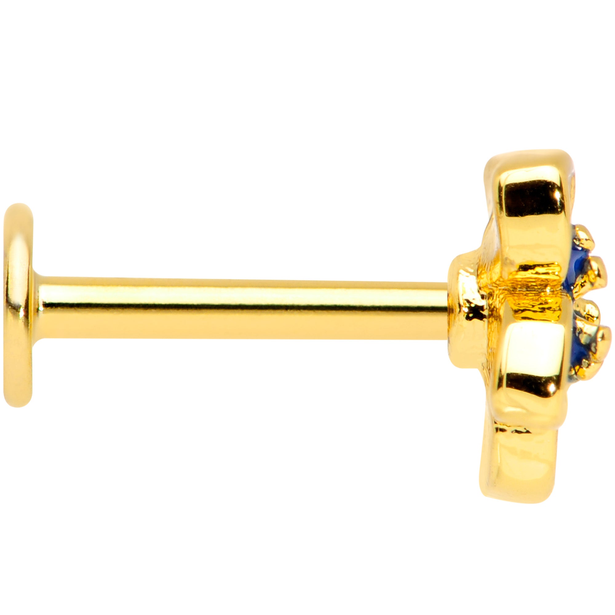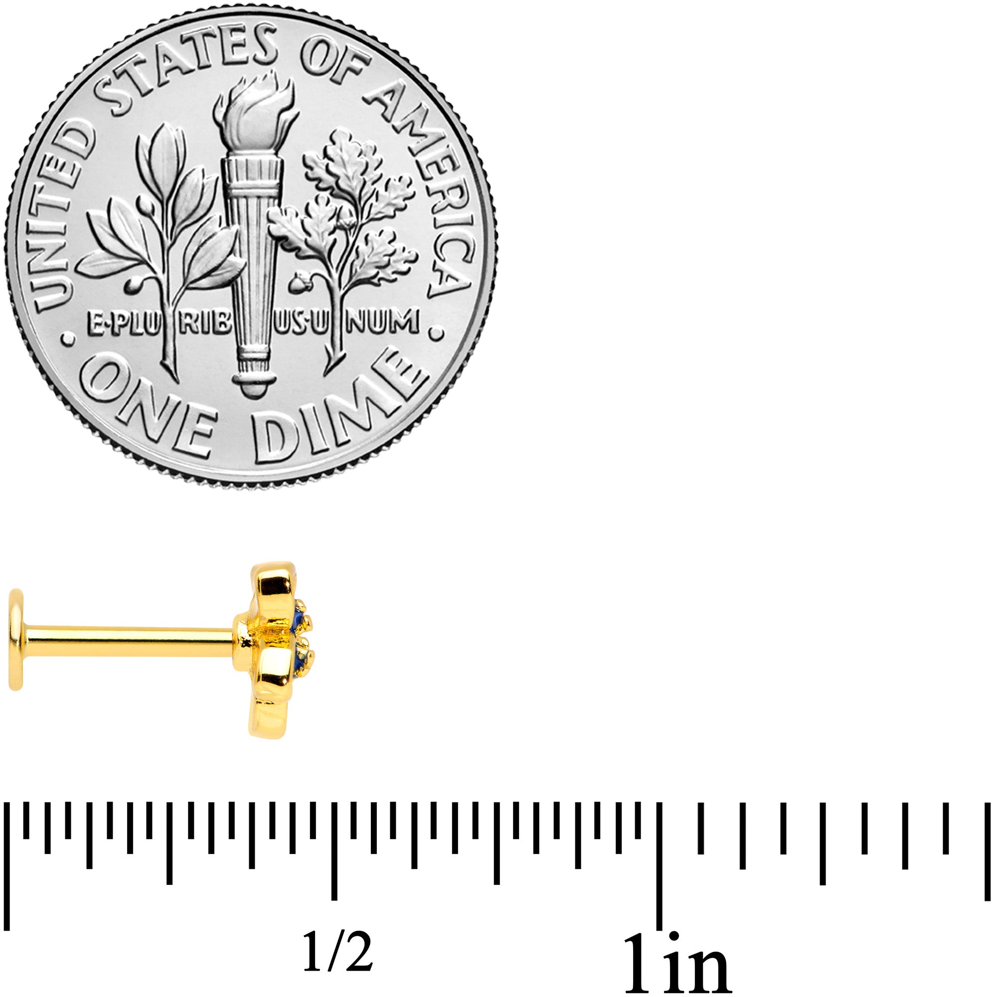 16 Gauge 5/16 Gold Tone White Blue Flower Labret Monroe Tragus