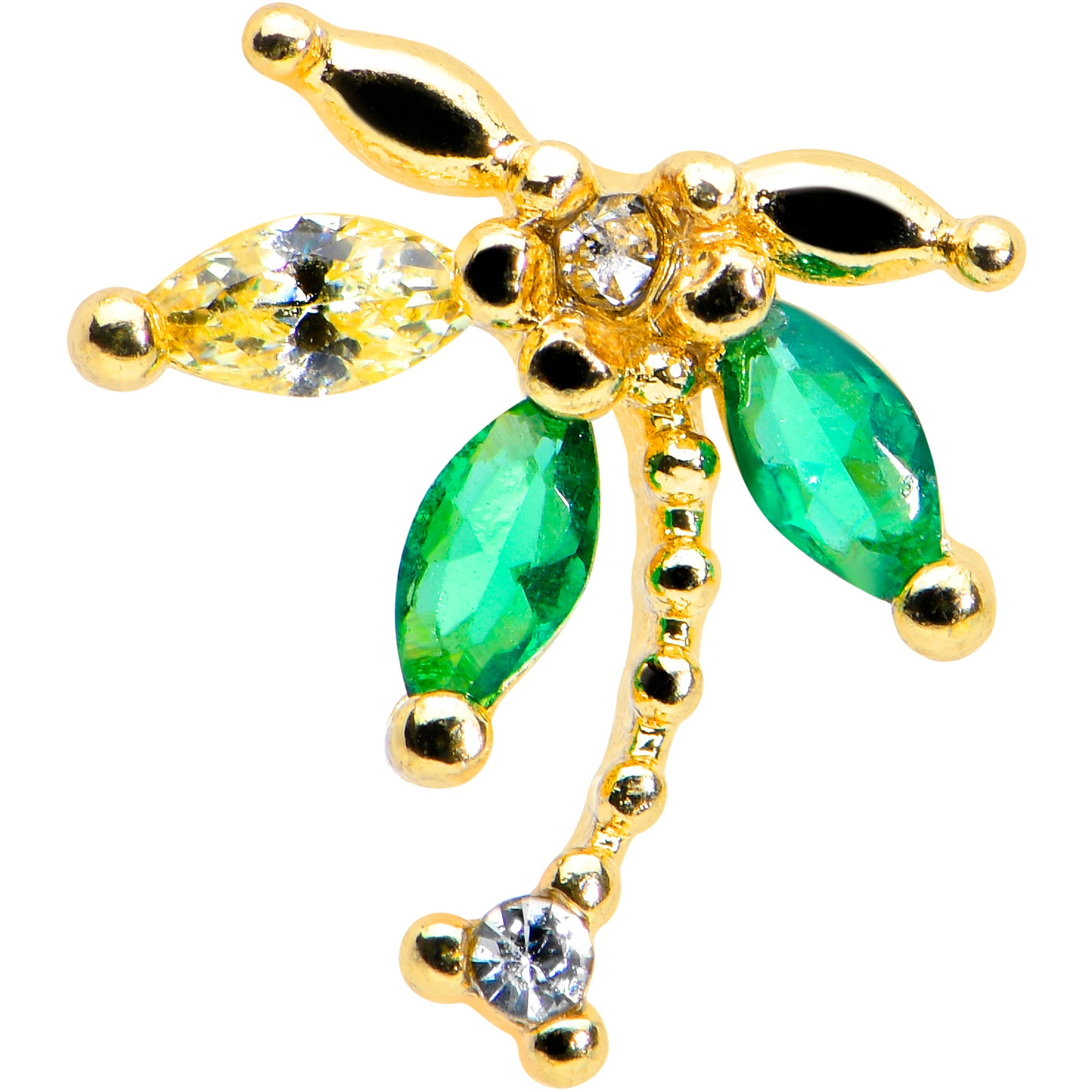 16 Gauge 5/16 Green Gem Gold Tone Palm Tree Labret Monroe Tragus
