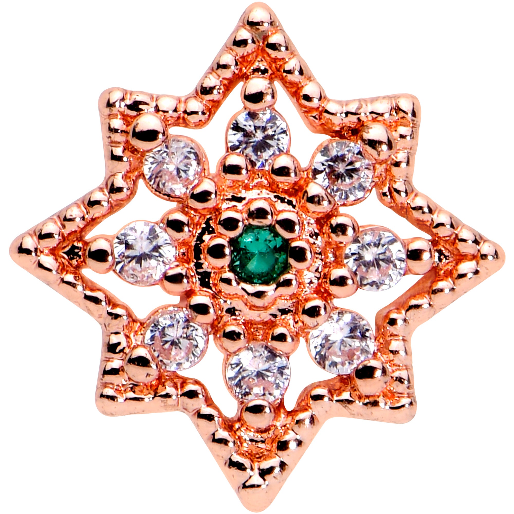16G 5/16 Green Gem Rose Gold Tone Evening Star Labret Tragus
