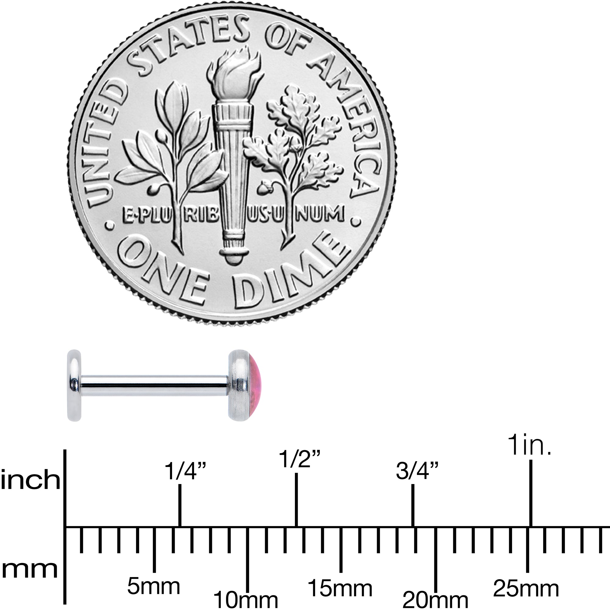 Stay comfortable and totally on trend with this 16 gauge lip ring! It's made with an 8mm durable 316L surgical grade straight barbell with a flat disc end. The front end features a 4mm pink faux opal for a look that's both timeless and totally on-trend. It also features an internally threaded design to give you maximum comfort when inserting or removing it. And you can even rock it in multiple piercings including lip, monroe, helix, tragus, and some conch piercings. You can have it all in one package with this thoughtfully made cartilage piercing jewelry!
