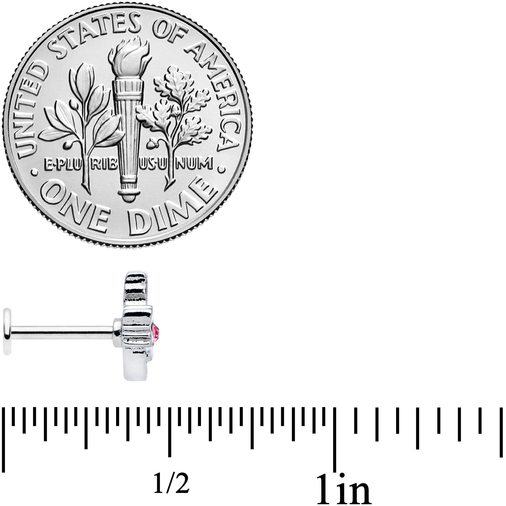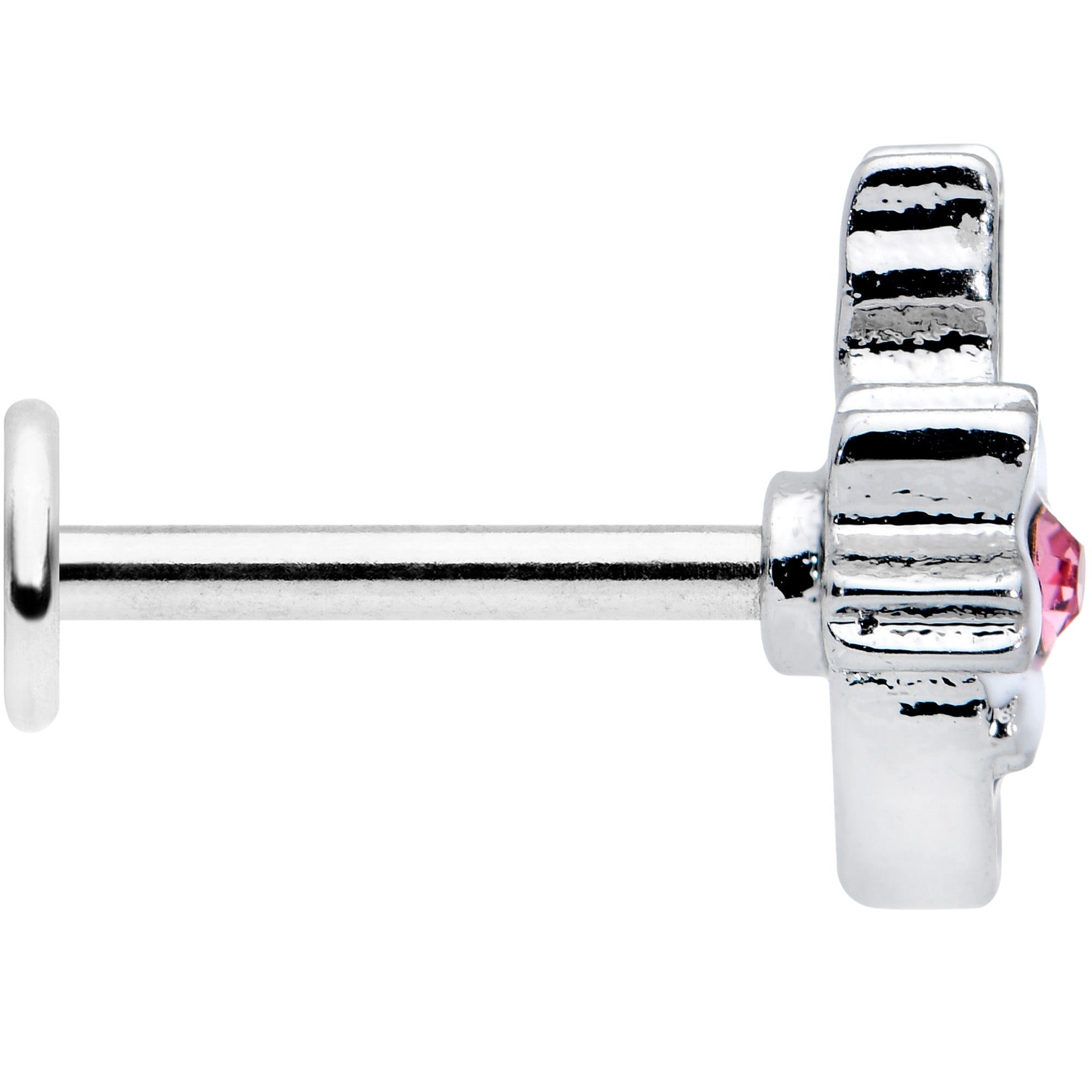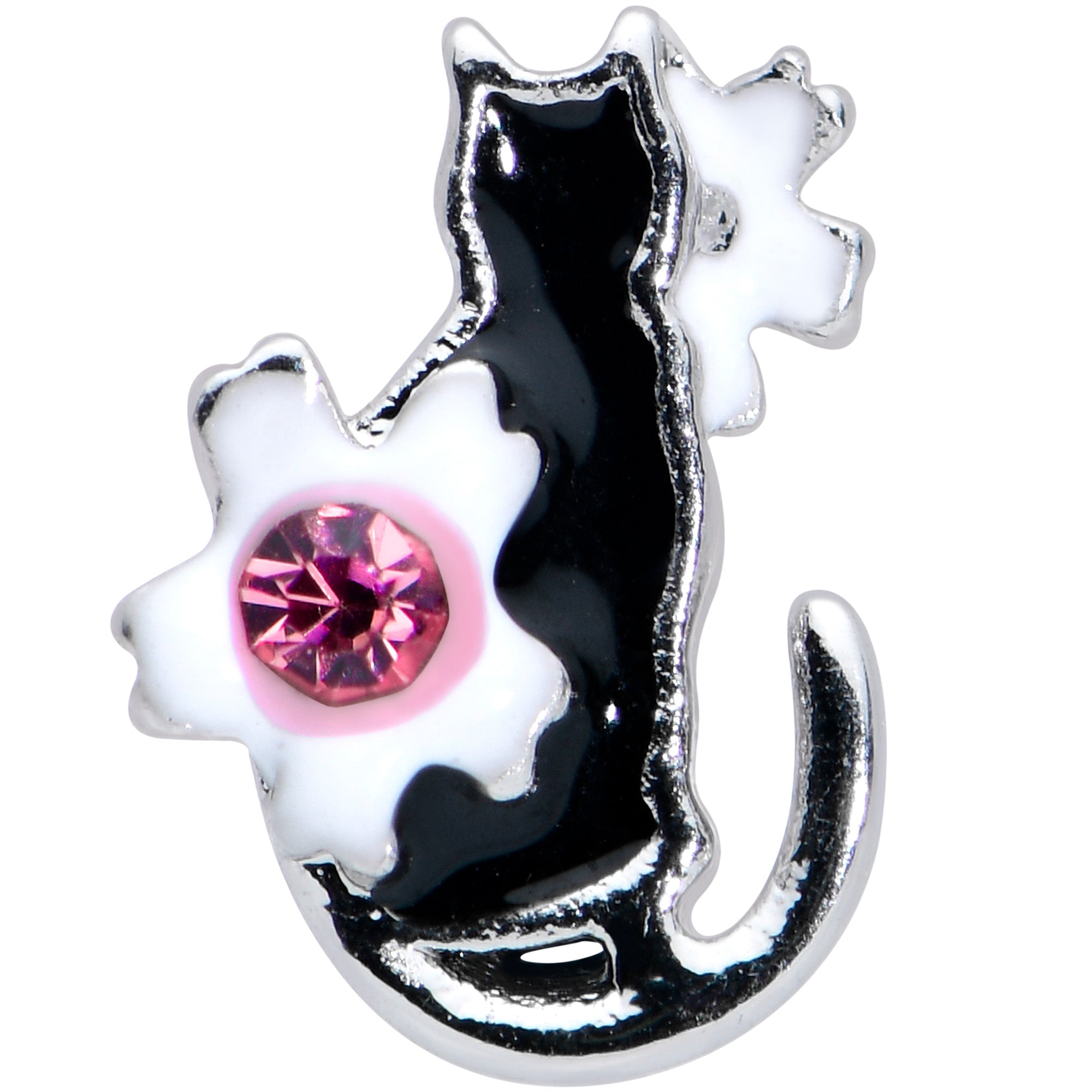 16 Gauge 5/16 Pink Gem Black Cat White Flowers Labret Monroe Tragus