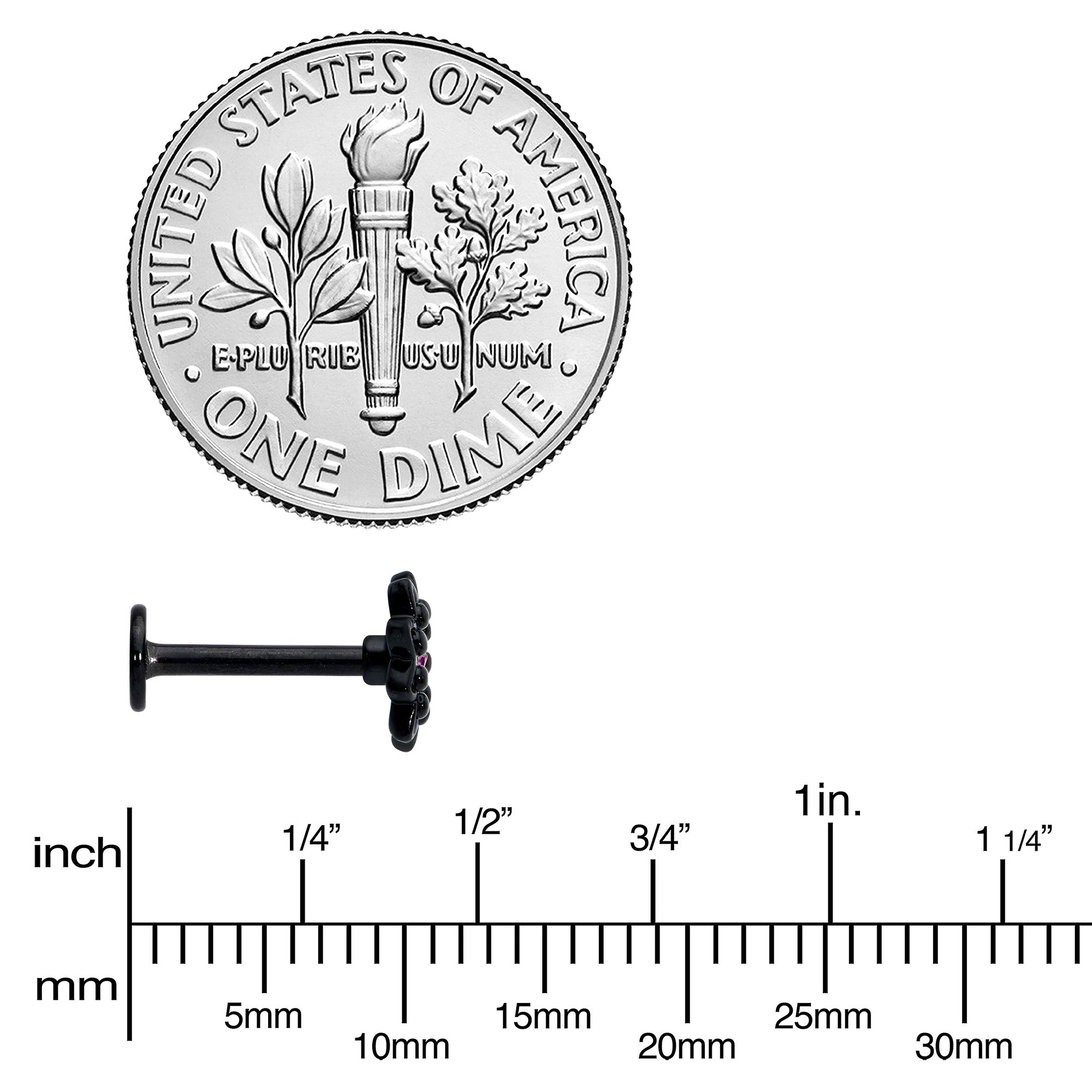 16 Gauge 5/16 Pink Gem Black Midnight Flower Labret Monroe Tragus