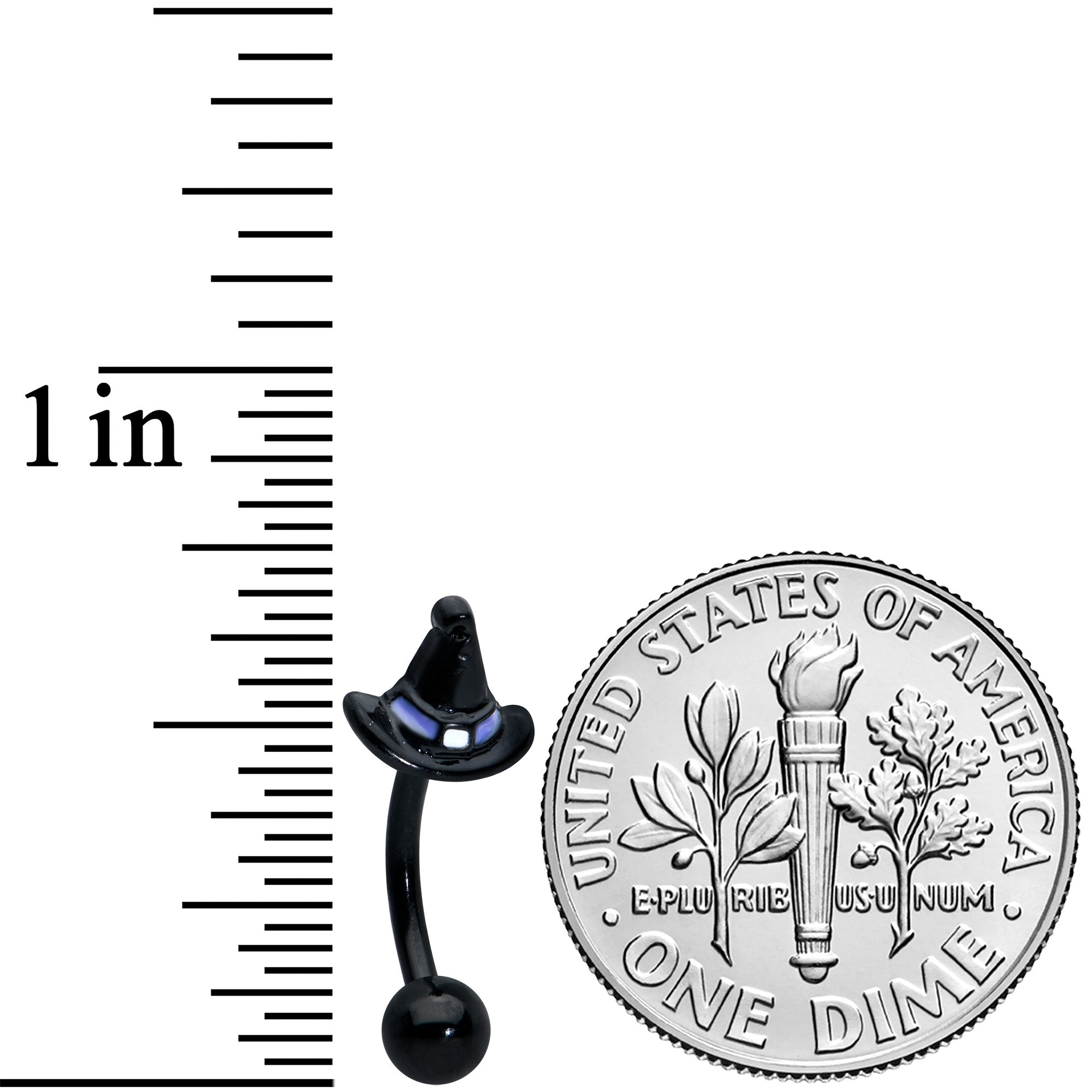 You'll be ready for anything this Halloween with this set of 16 gauge eyebrow rings! Two are made with 8mm durable 316L surgical grade stainless steel curved barbells. One features a pink pearlescent top ball end. The other features a spider charm, with pink gem embellishments and individually detailed legs. The third one is made with an 8mm black PVD over 316L surgical grade stainless steel curved barbell and features a witch's hat charm in black, with a purple hat band embellishment. You can even rock this cartilage jewelry in multiple piercings including tragus, rook, and eyebrow piercings! You'll have your bases covered in style this Halloween with these eerie and elegant cartilage rings! Sold as a set of three.