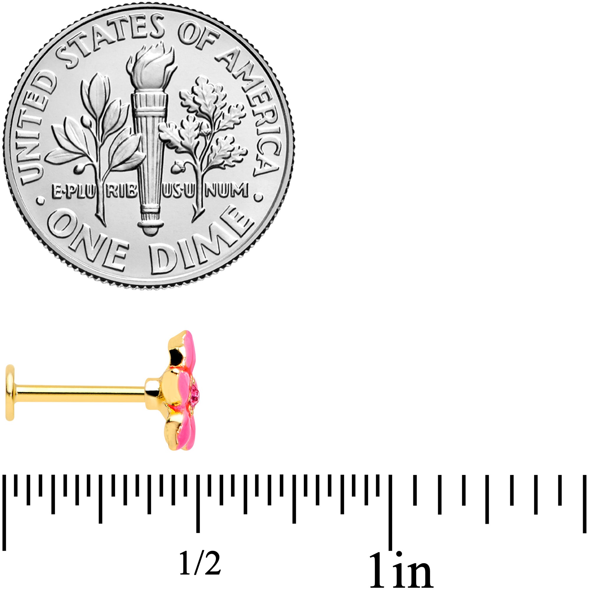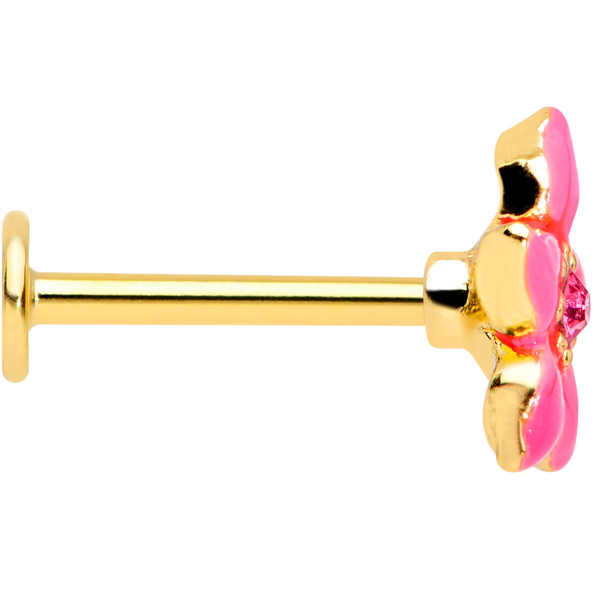 16 Gauge 5/16 Pink Gem Gold Tone Exotic Flower Labret Monroe Tragus