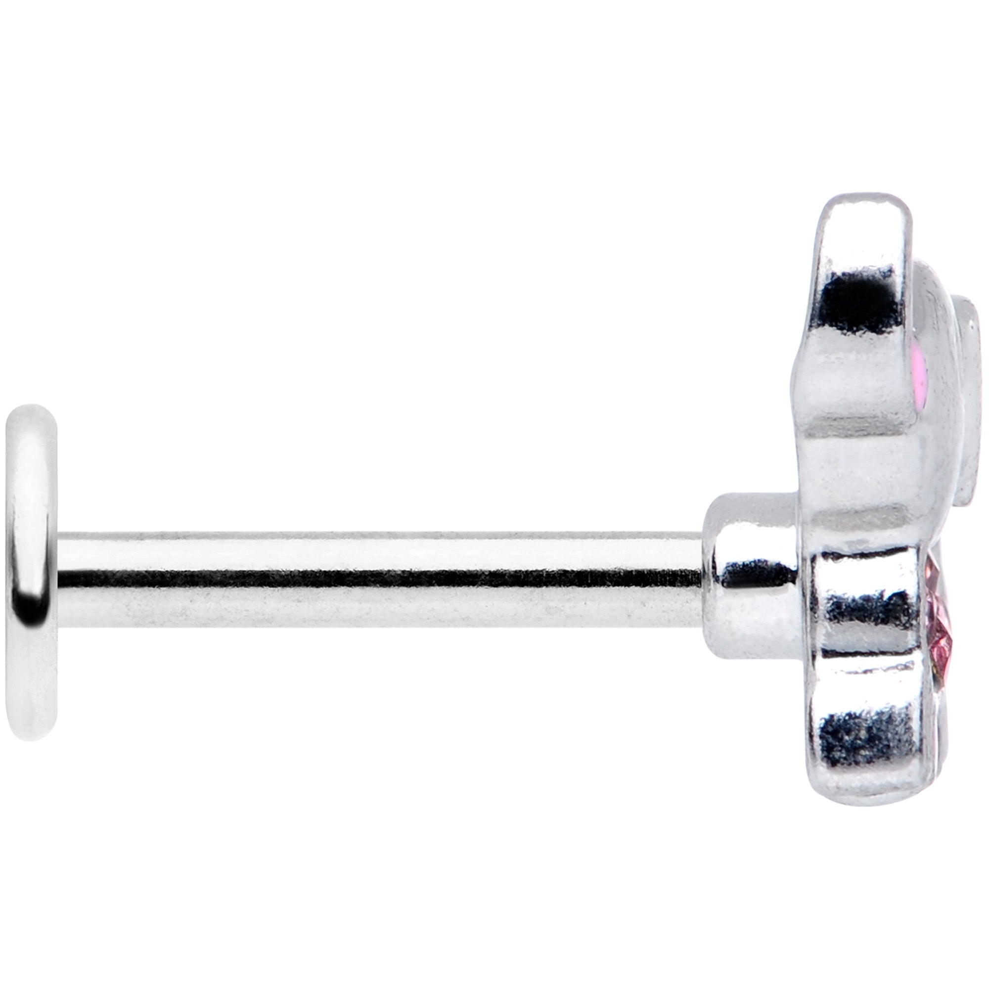 16 Gauge 5/16 Pink Gem Lucky Elephant Labret Monroe Tragus