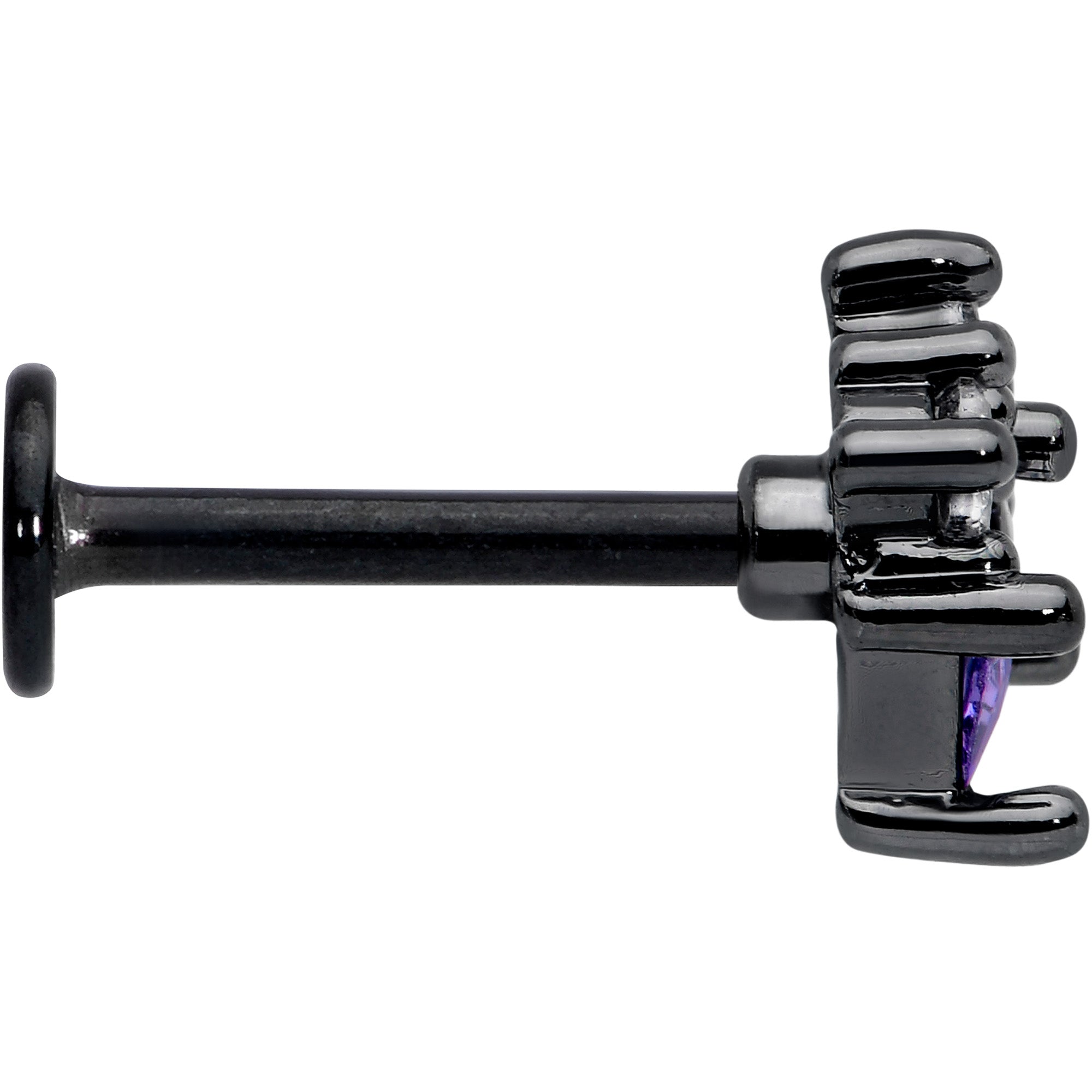 16 Gauge 5/16 Purple CZ Gem Black Rhombus Riot Labret Monroe Tragus