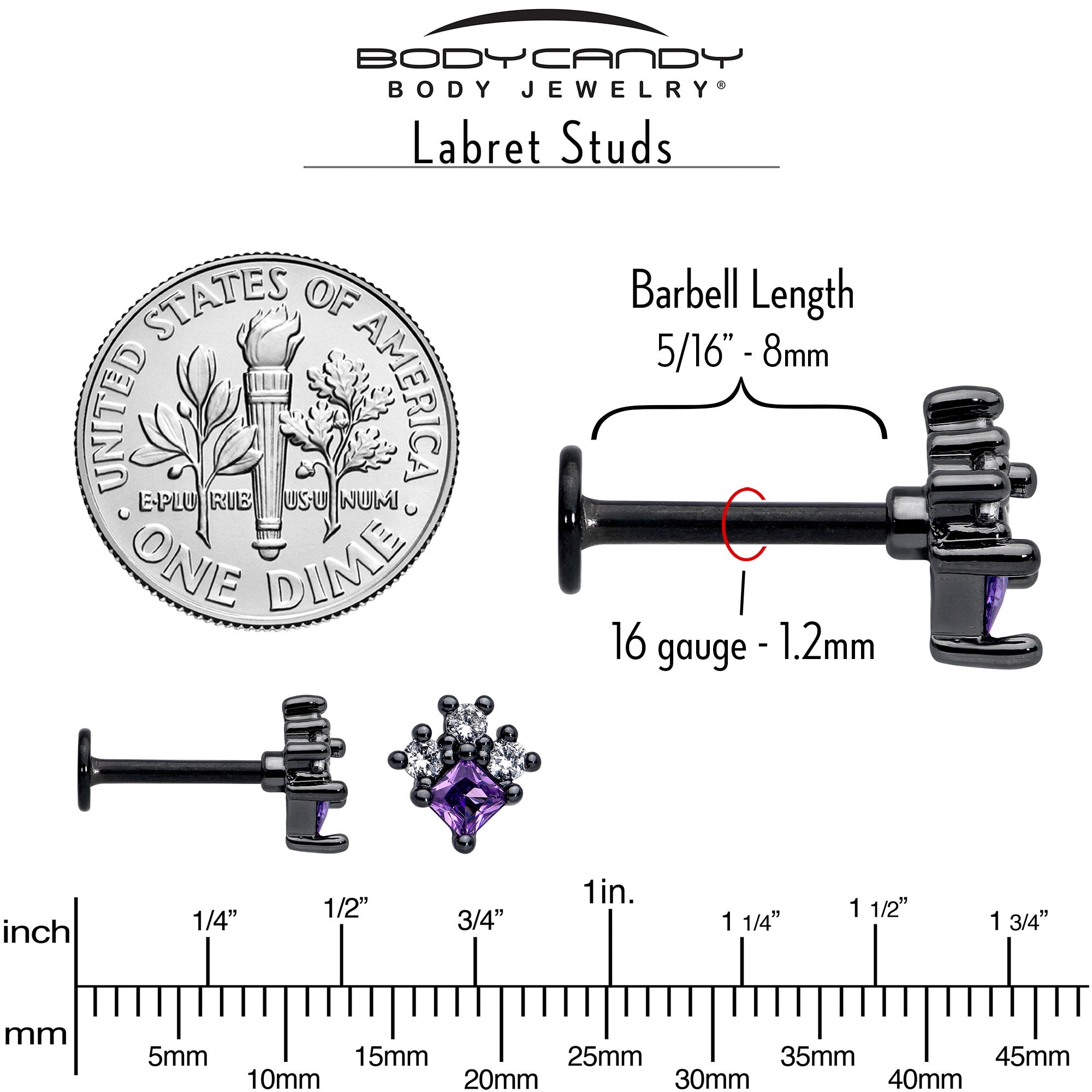 16G 5/16 Purple CZ Gem Black Rhombus Riot Labret Monroe Tragus