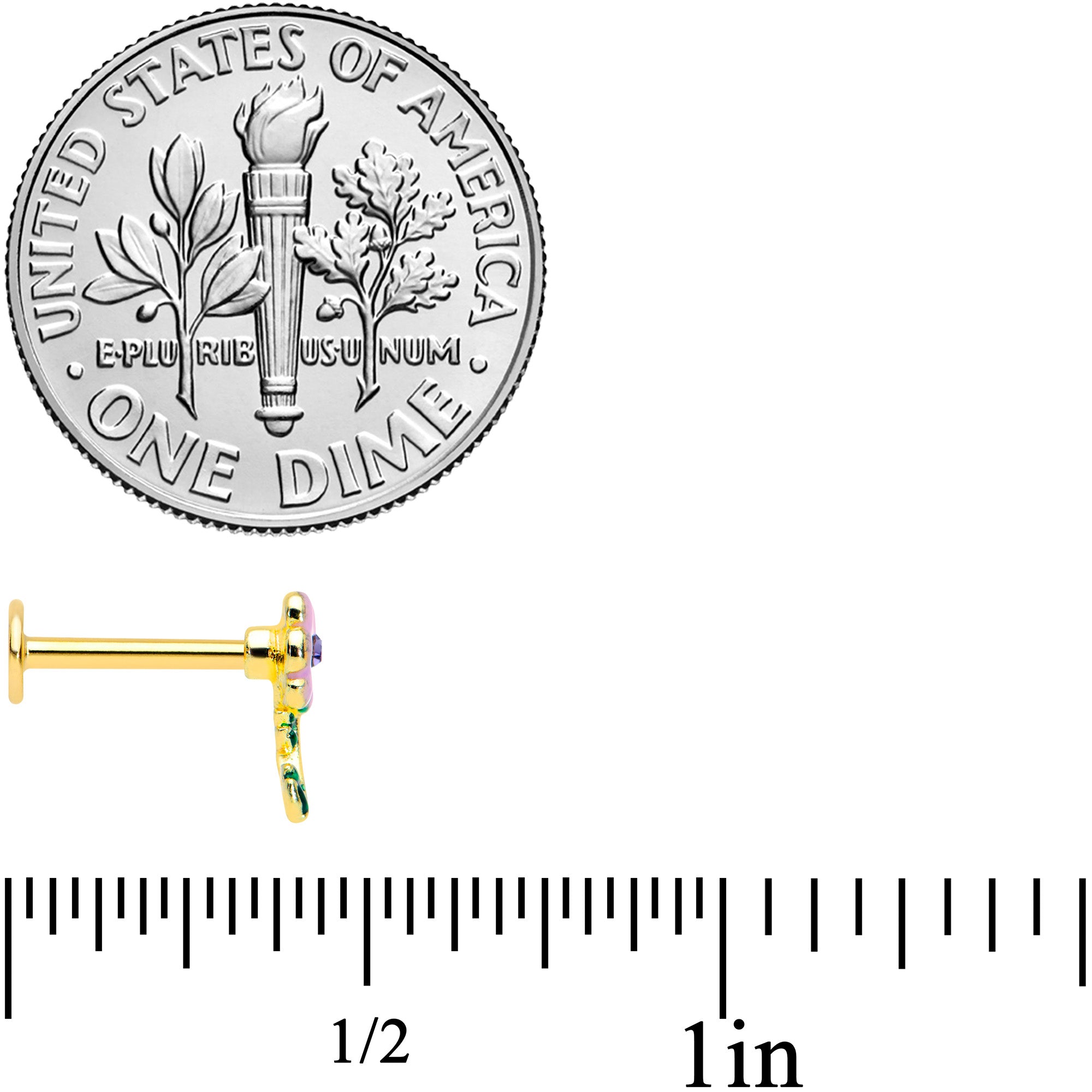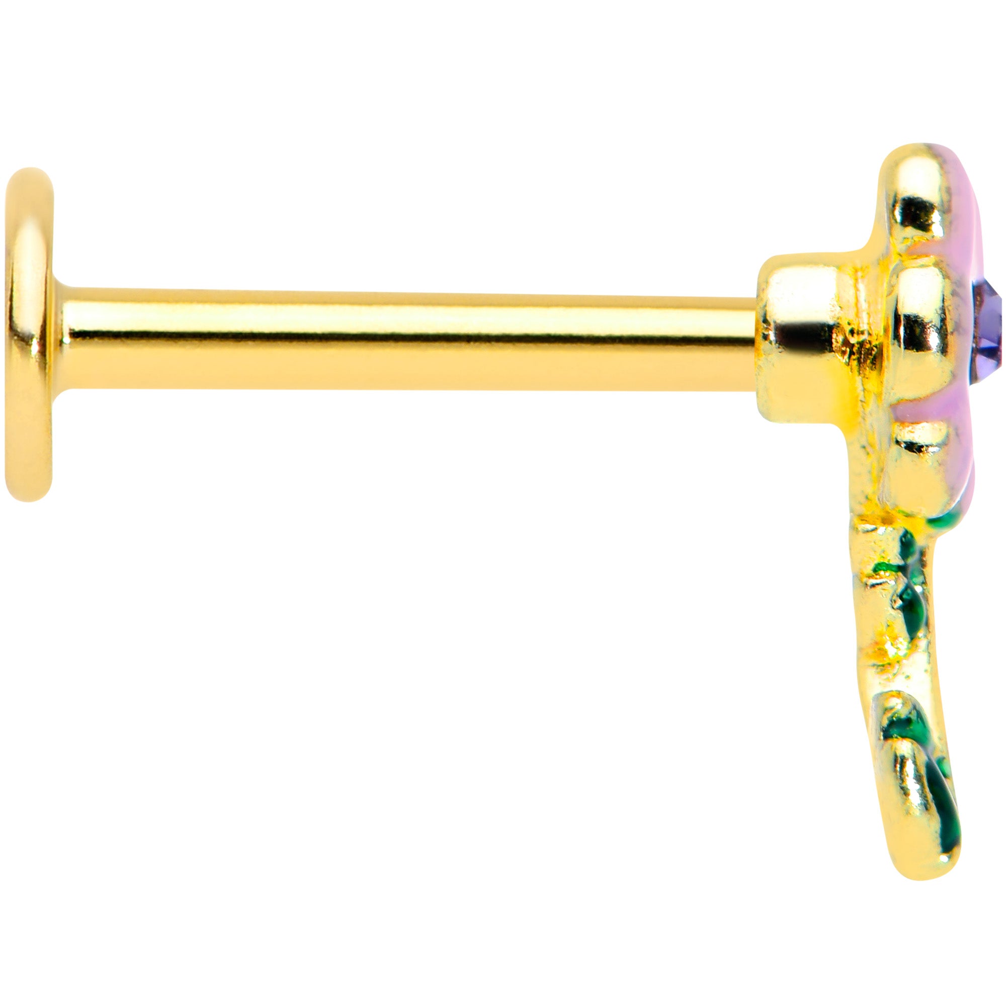 16 Gauge 5/16 Purple CZ Gem Gold Tone Pink Flower Labret Monroe Tragus