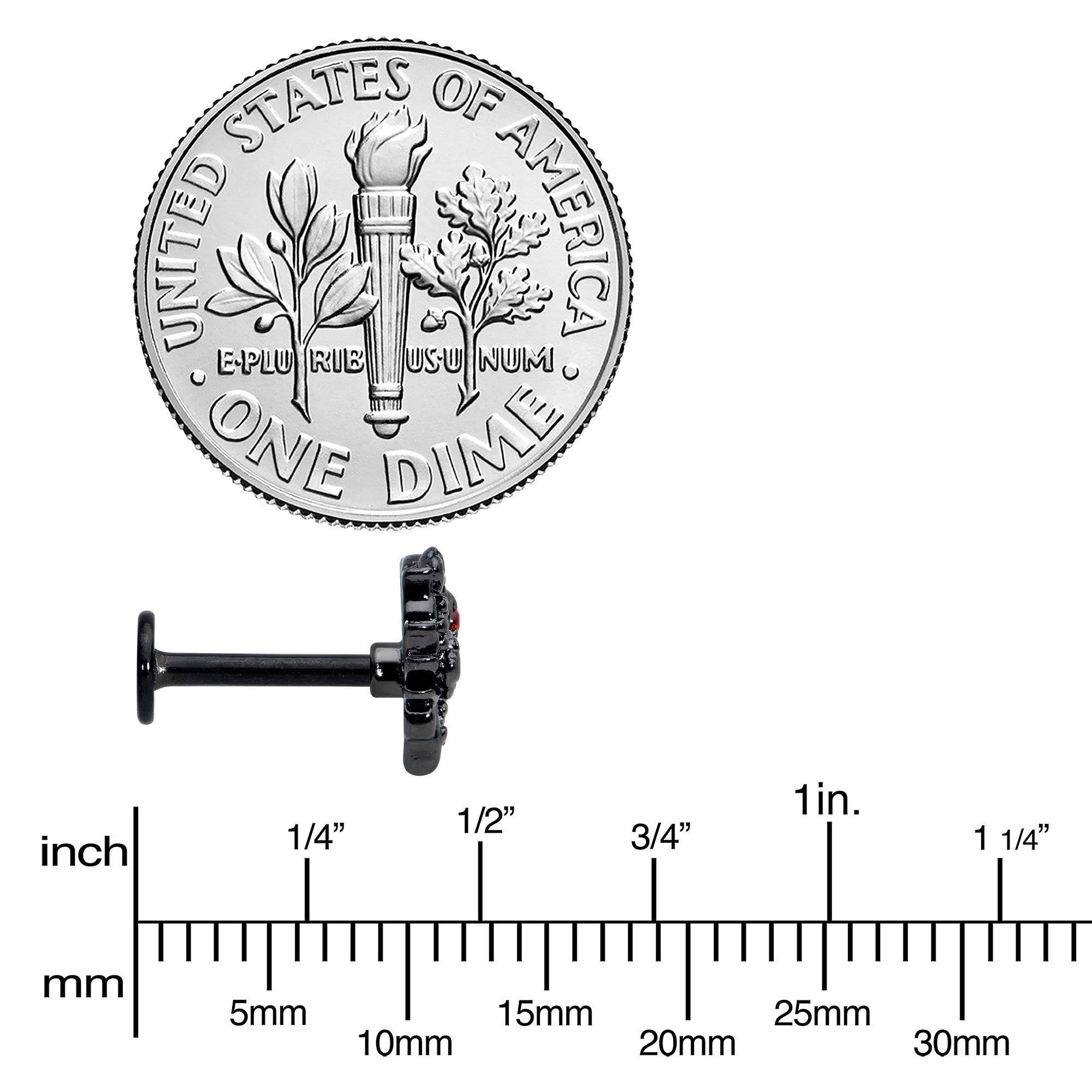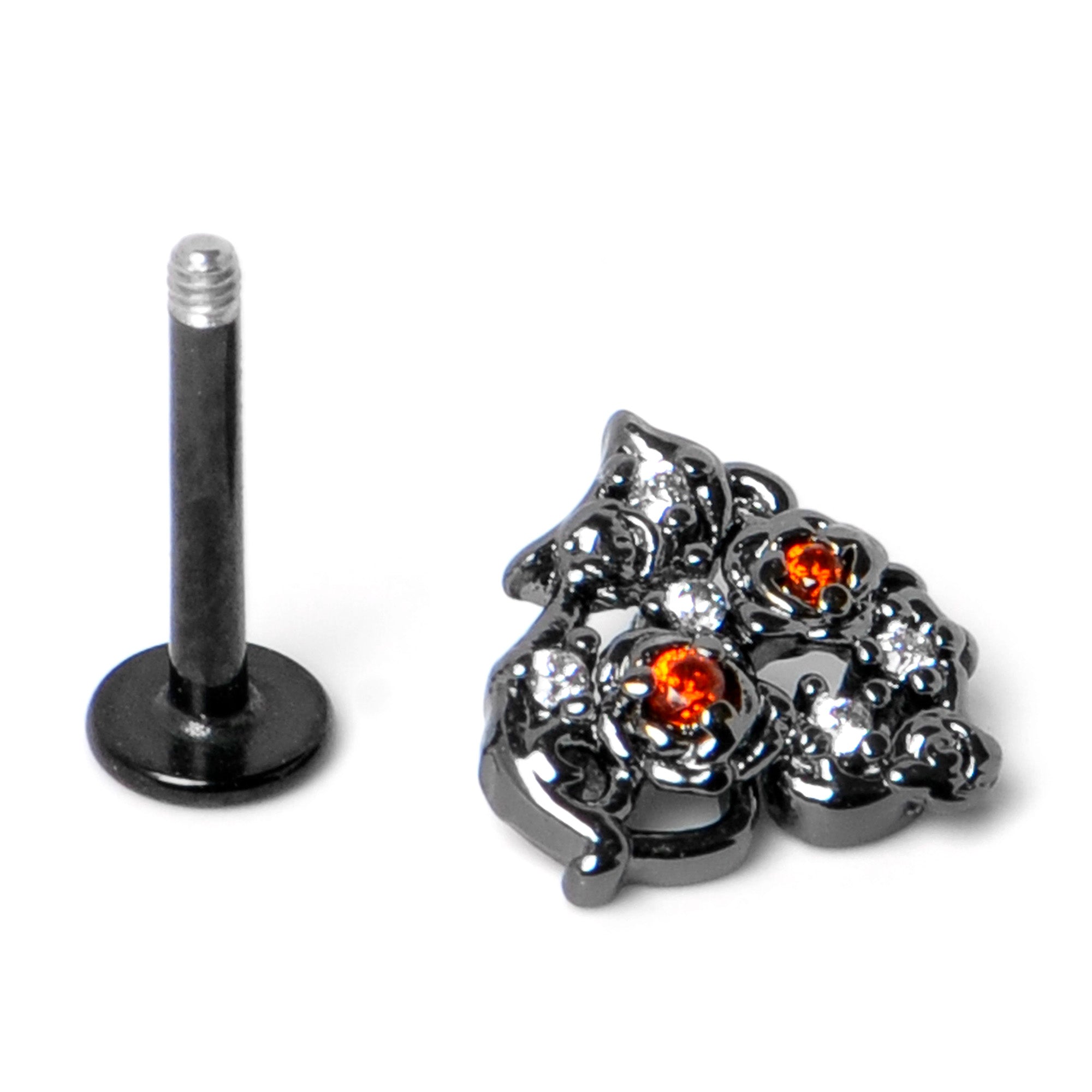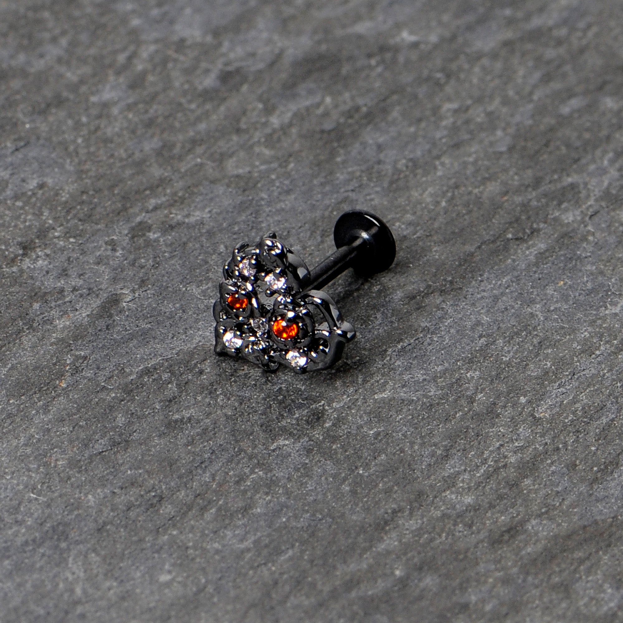 16 Gauge 5/16 Red Clear CZ Gem Black Floral Heart Labret Monroe Tragus