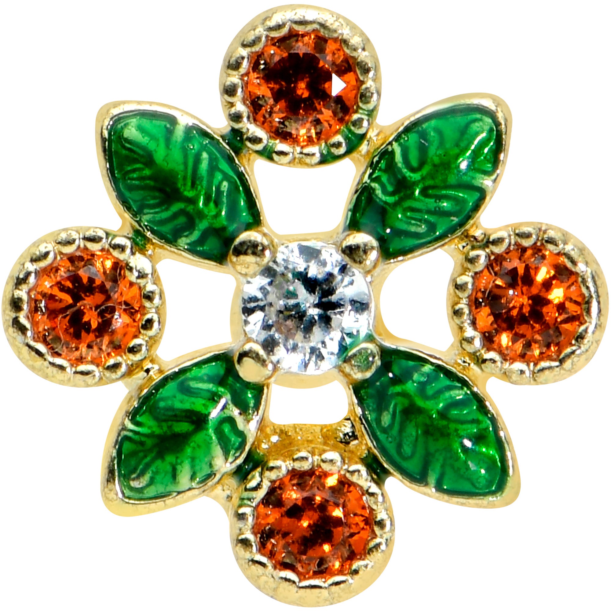 Decorate your piercings for the holiday season with this 16 gauge lip ring! It's made with an 8mm gold tone PVD over 316L surgical grade stainless steel straight barbell with a flat disc end. It features a spray of holly charm with green inlaid leaves. The berries are red gems and it's set at the center with a clear gem for a cohesive appearance. You can wear it in multiple piercings including lip, monroe, tragus, helix, and some conch piercings. Give your piercings a festive feel with this holiday holly cartilage jewelry!