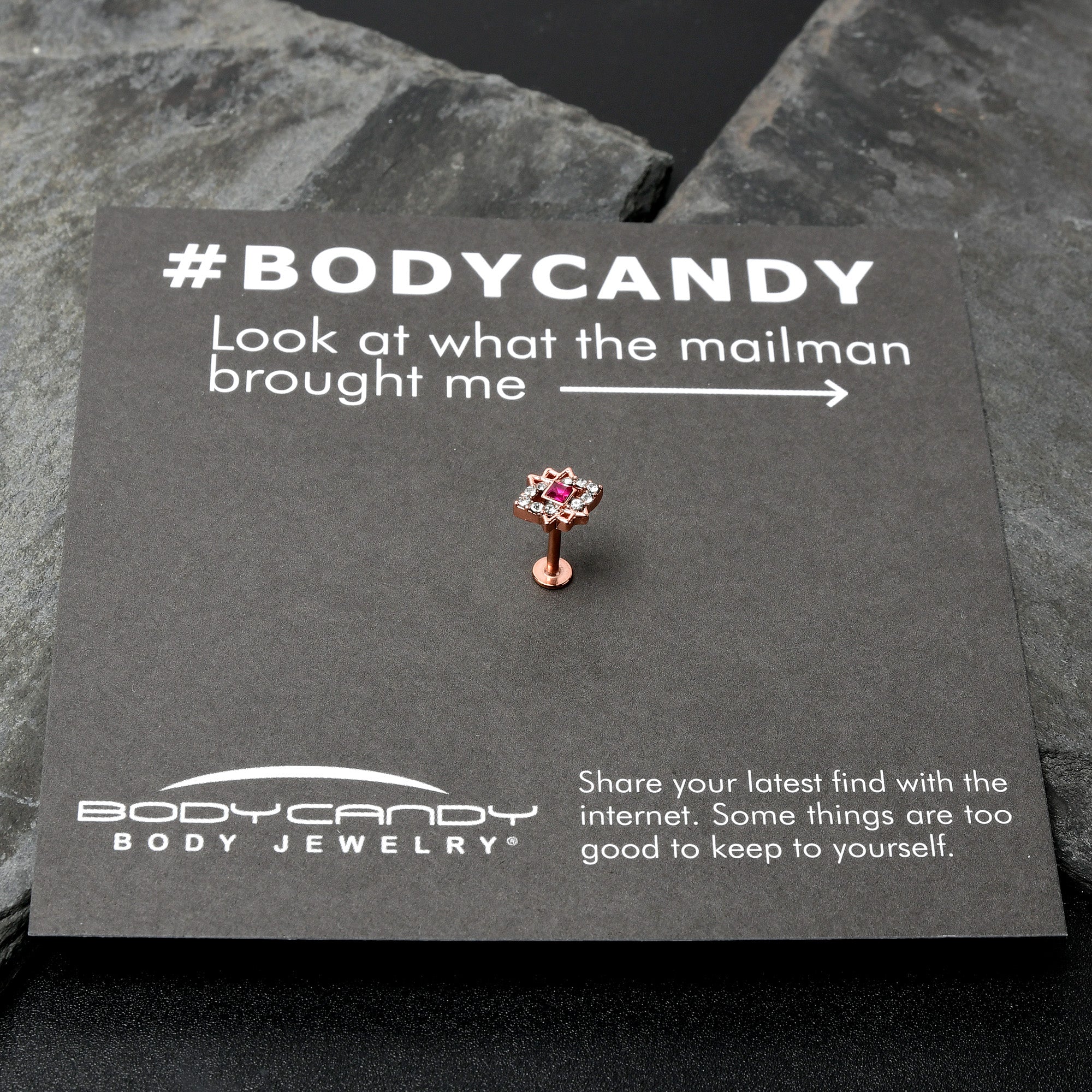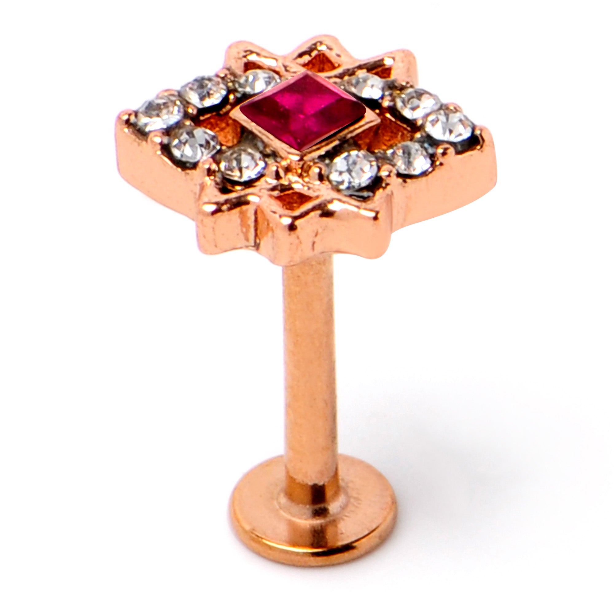 16 Gauge 5/16 Red Gem Rose Gold Tone Octogram Star Labret Monroe Tragus