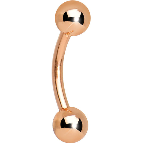 This 16 gauge 8mm curved barbell is shiny and beautiful in its simplicity and can be used for a daith ear piercing, eyebrow ring or as a rook piercing. 3mm ball ends and trendy rose gold make this classic curved barbell a must-have. Rook earring, daith earring or eyebrow body jewelry.