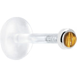 This bioplast tragus earring stud has a comfortable push in style and is designed with 14k solid gold and a genuine 2mm tiger eye natural stone. Solid 14k gold push fit tragus earring stud with bioplast stem. 16 gauge tragus earring stud Body Jewelry./P>