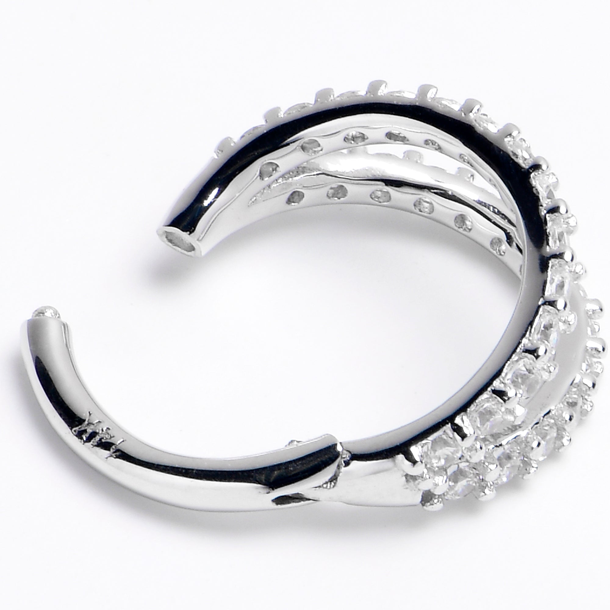 Our 16 gauge double hoop cartilage ring makes for a stunning appearance, adding a touch of elegance to your look. It is made with an 8mm solid 14 karat white gold circular ring. It features a double row of clear cubic zirconia gems. The double hoop for single piercing features a non-removable, hinged segment that is easy to insert and remove, making it a practical and fashionable choice for any occasion. You can even rock it in multiple piercings including tragus, helix, and some conch piercings, this strikingly stylish cartilage piercing jewelry is the perfect choice.