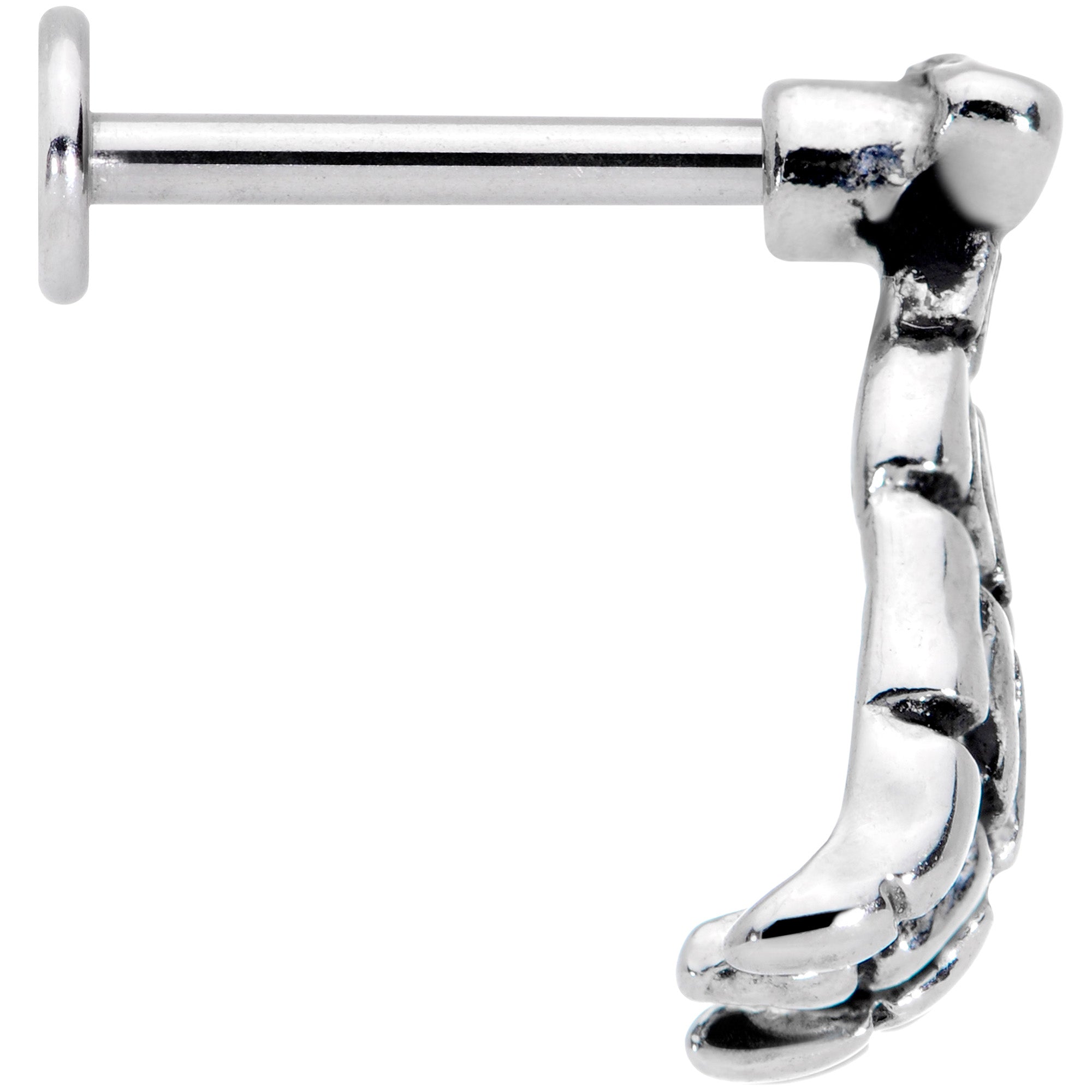 They say you should keep your hands off your body piercings but here's one you can leave on your piercings for as long as you like! The 16 gauge labret jewelry is made with an 8mm durable 316L surgical grade stainless steel straight barbell with a flat disc end. It features a creepy skeleton hand charm! Even better, this scary body jewelry isn't confined to one piercing - it works well in lip piercings like some labret and monroe piercings as well as cartilage piercings like the helix, tragus, and conch. Let this Halloween hand send chills up your spine as it hangs out in your piercings!